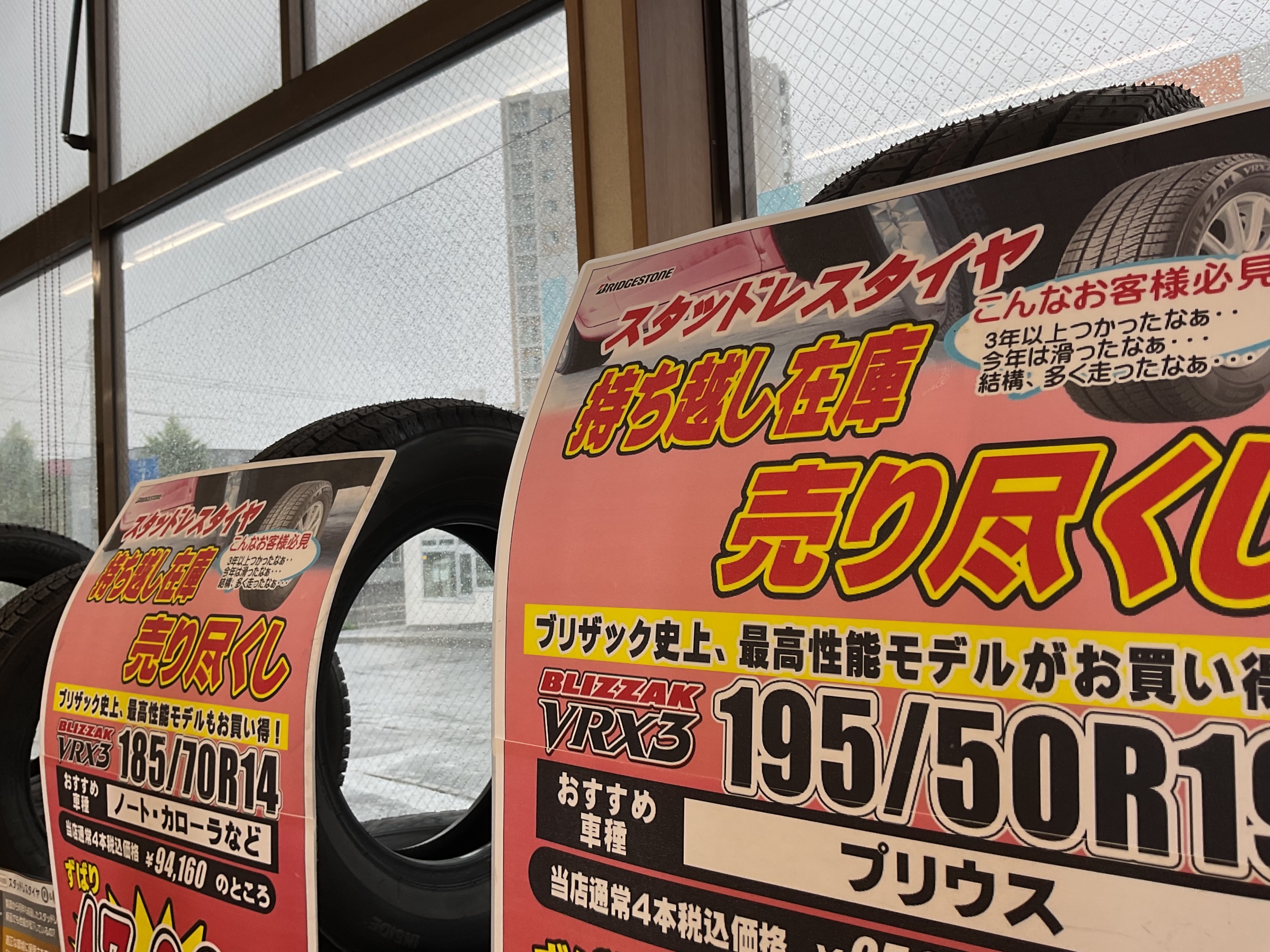 在庫処分品のタイヤを求めてご来店する方も数多くいらっしゃいますよ。