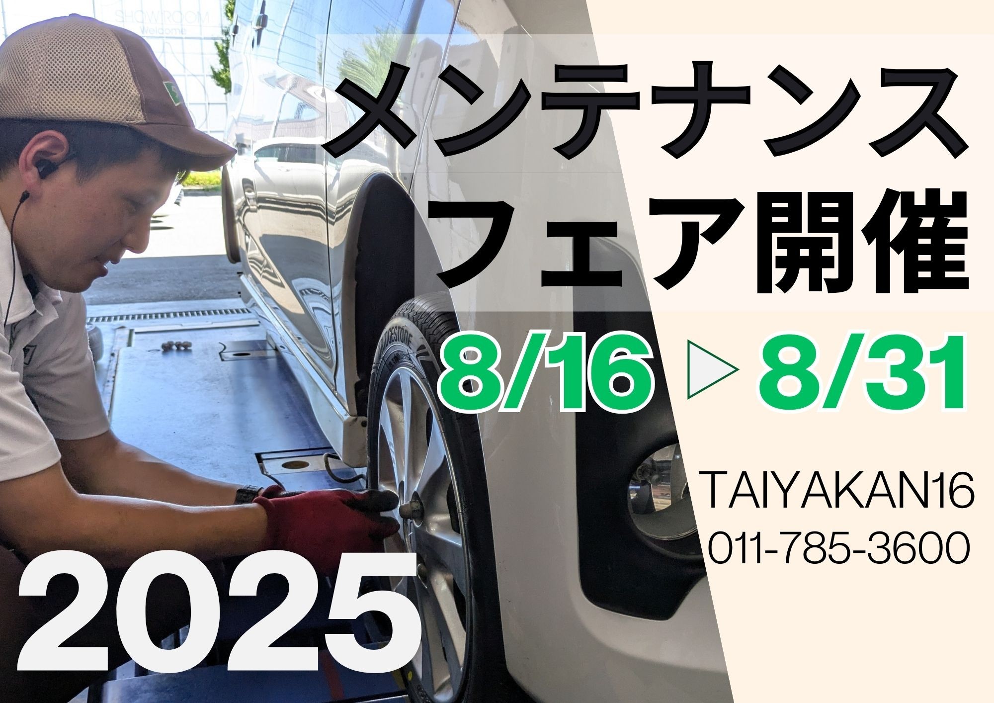 タイヤ館ではお得なメンテナンスフェアを開催します。
