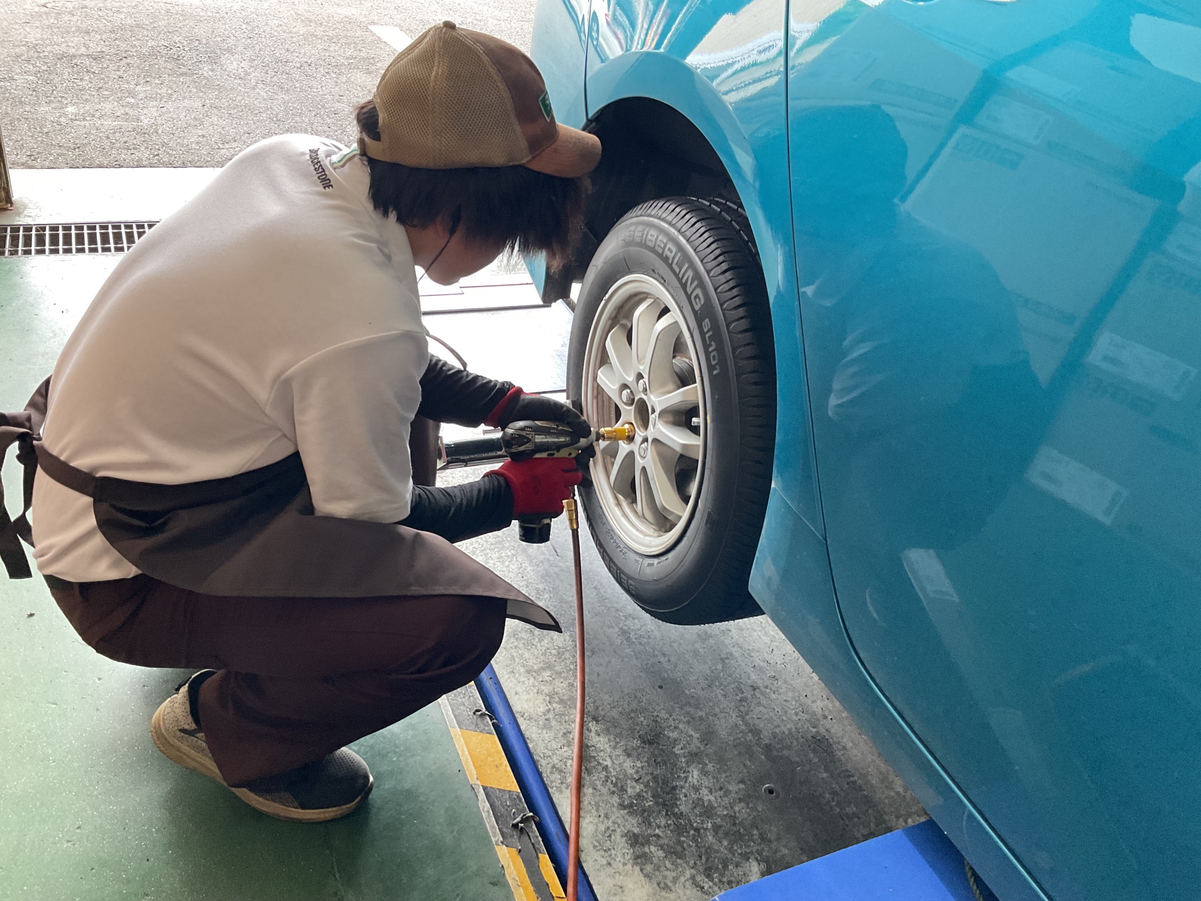 タイヤの減り方に偏りが出ていたためアライメント作業も同時に実施。