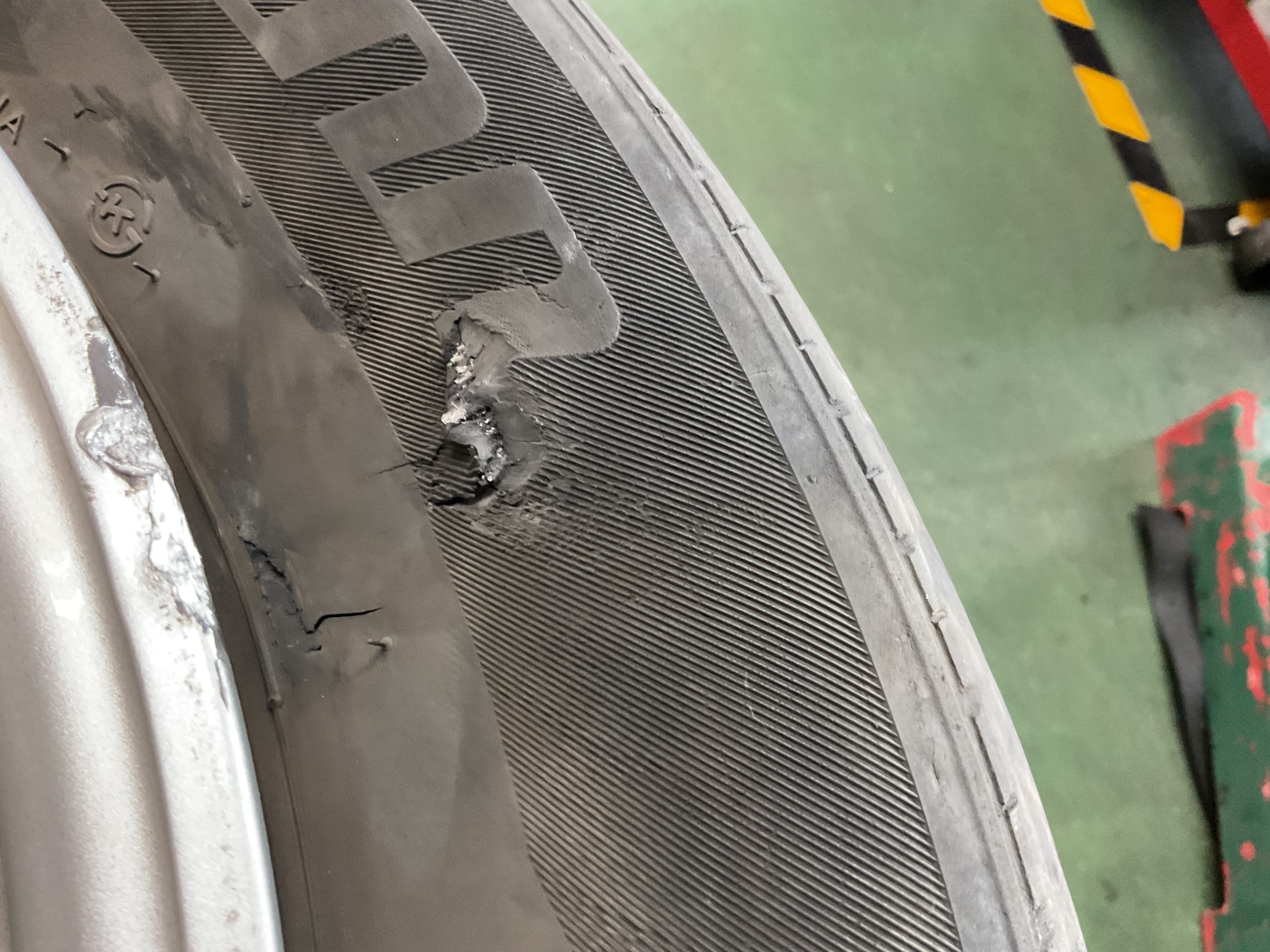 今回はタイヤを強くぶつけてしまい、タイヤの横に穴が開いて