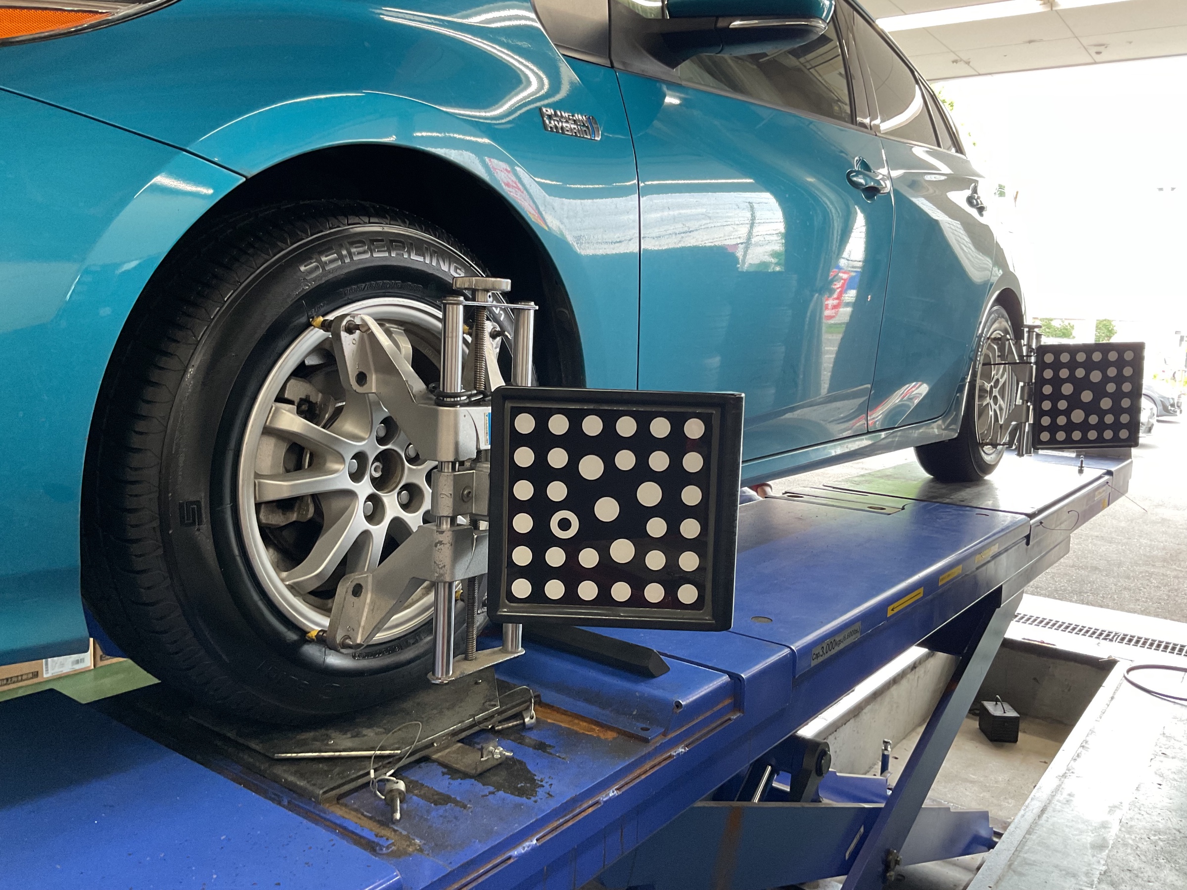 今回はプリウスの新品タイヤ交換とアライメント作業の実例をご紹介。