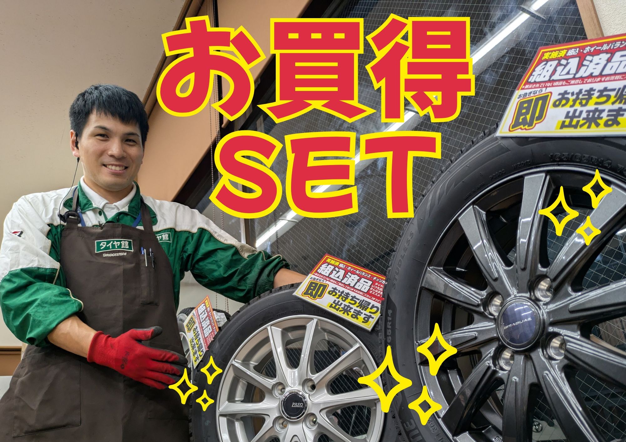 ▶タイヤ館北16条環状通ではホイール組品セットがお得