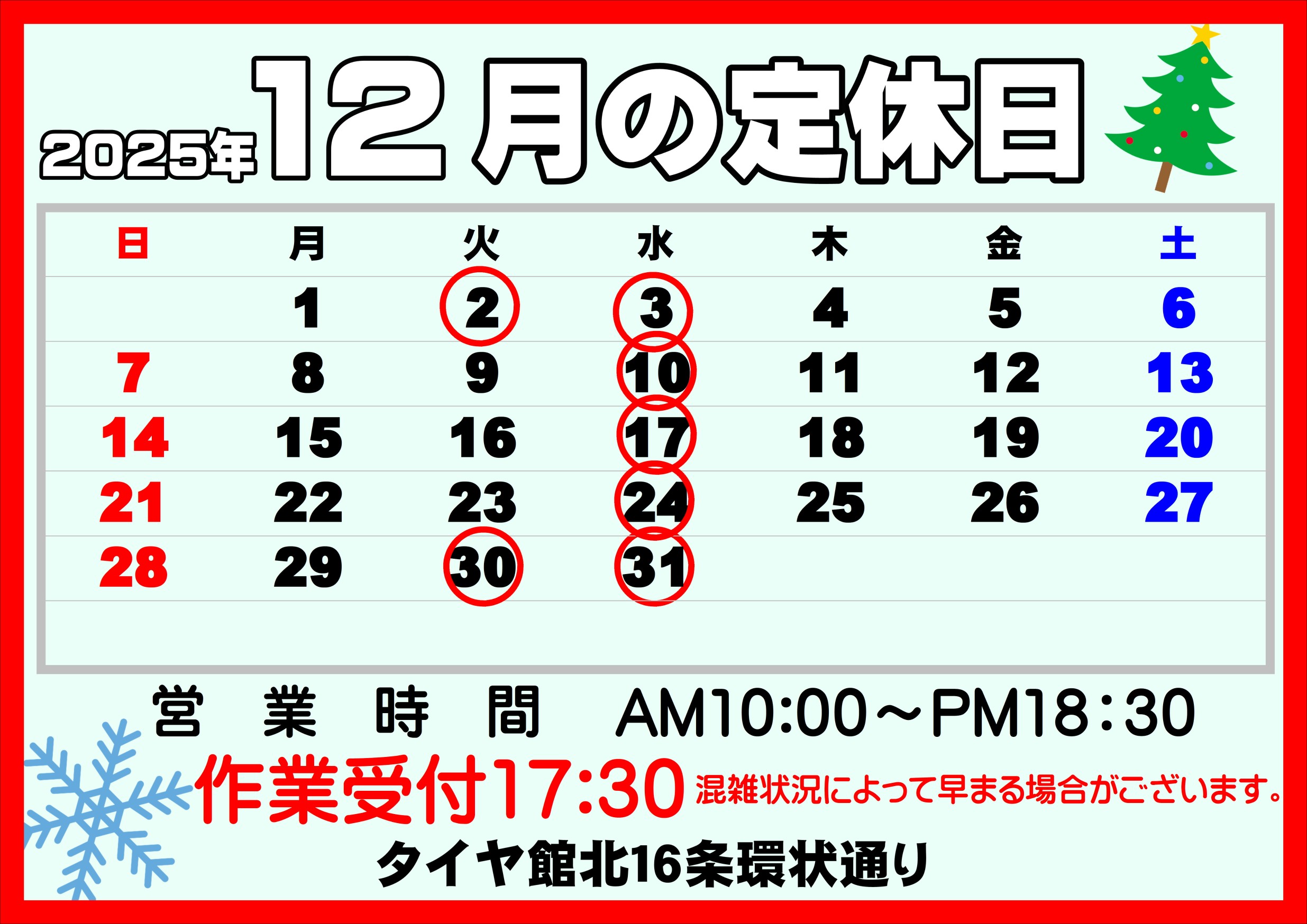 12月の定休日