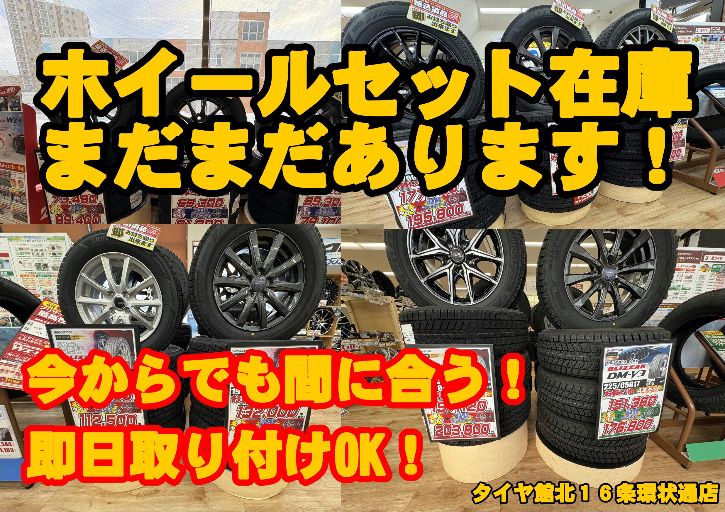 即日取り付け相談OK!タイヤ館北16条環状通店「ホイールセット」まだまだ在庫ございます!