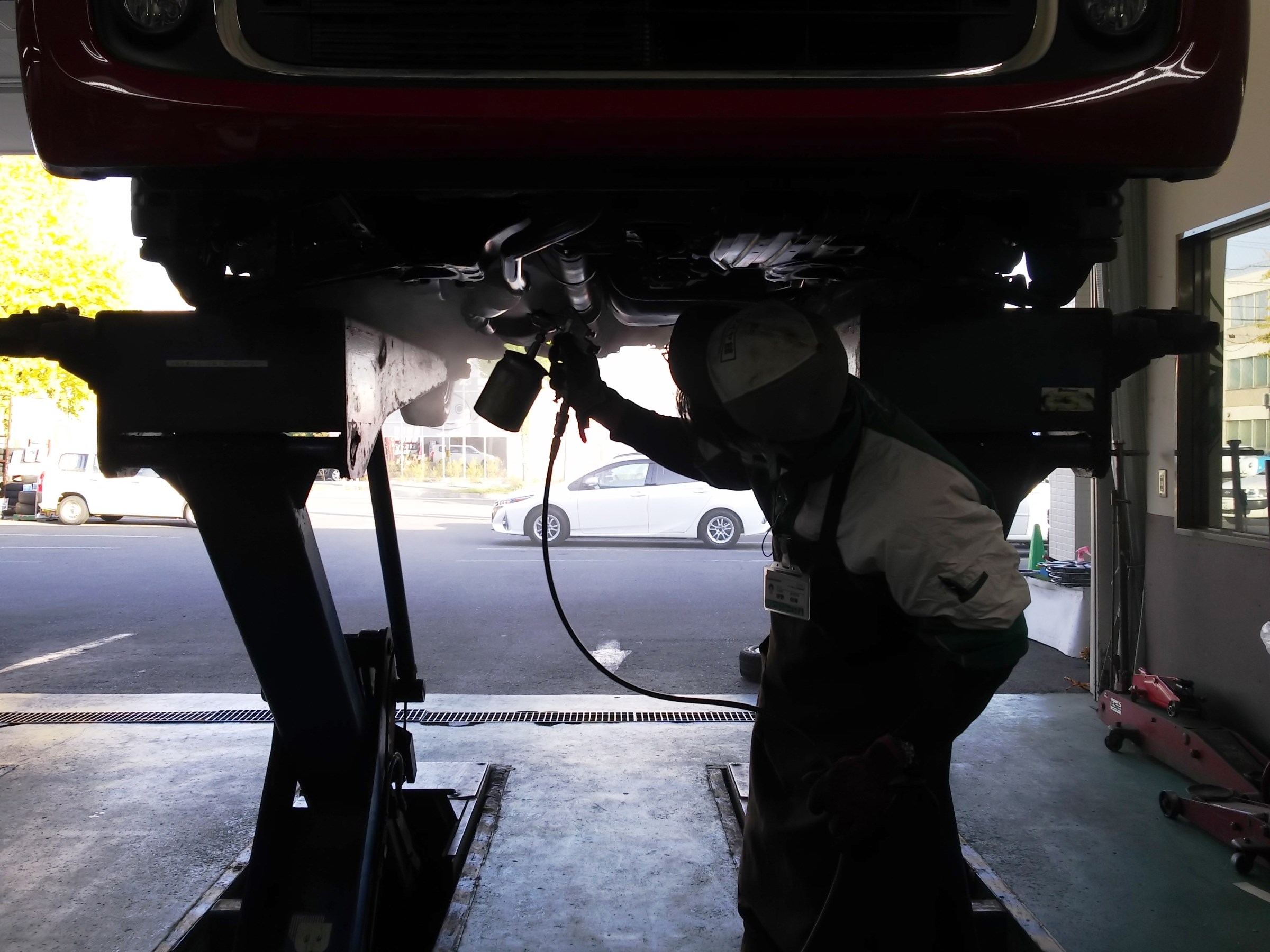 今日はタイヤ交換と同時に下回りのサビ止めをご希望されるお客様がたくさんいらっしゃいました。