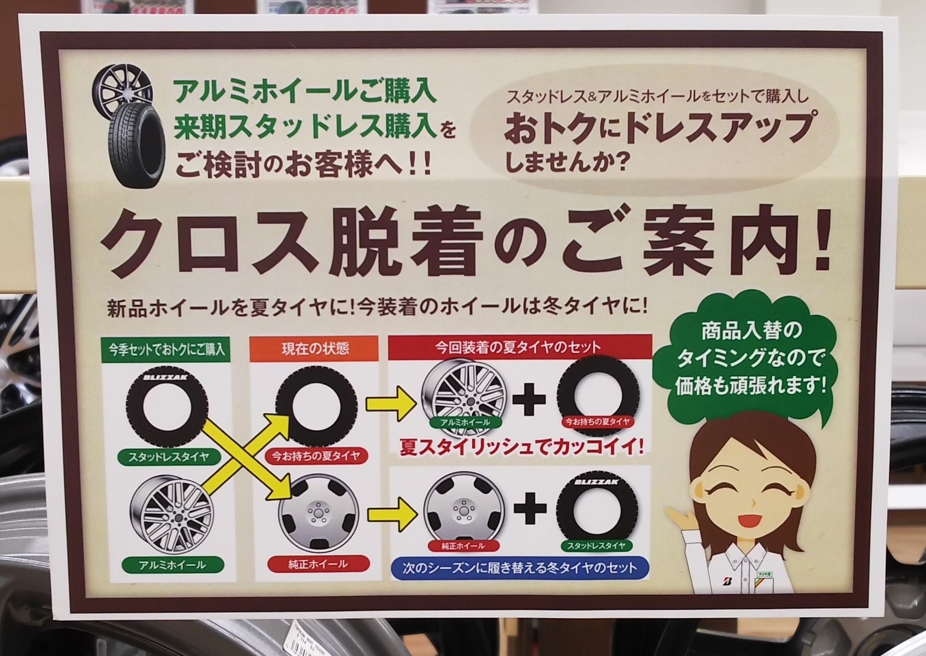 「クロス脱着」とは、夏と冬のホイールを交換する事!