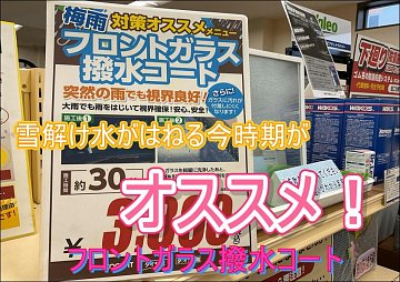 こんにちは タイヤ館北16条環状通です。 最近は、雪解けで泥水が跳ねて車が汚れたり、 フロントガラスに水滴がたまり見えづらくなりやすいと思います。 ワイパーでいくら拭いても 水がのびるだけで、一向に見えやすくならないことないですか? そんなあなたに タイヤ館北16条環状通でおススメの施工...