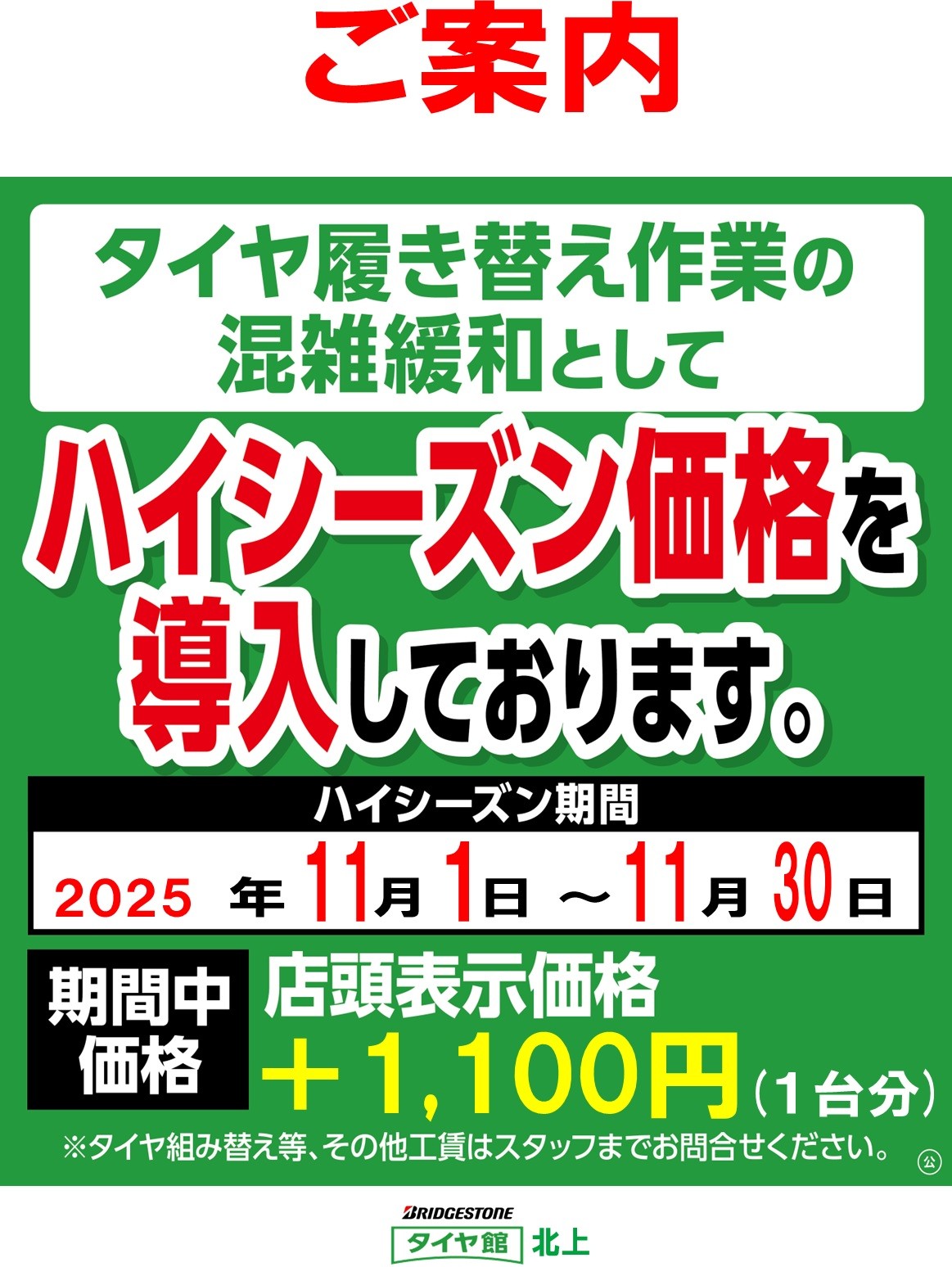来月からタイヤ交換(脱着)料金が