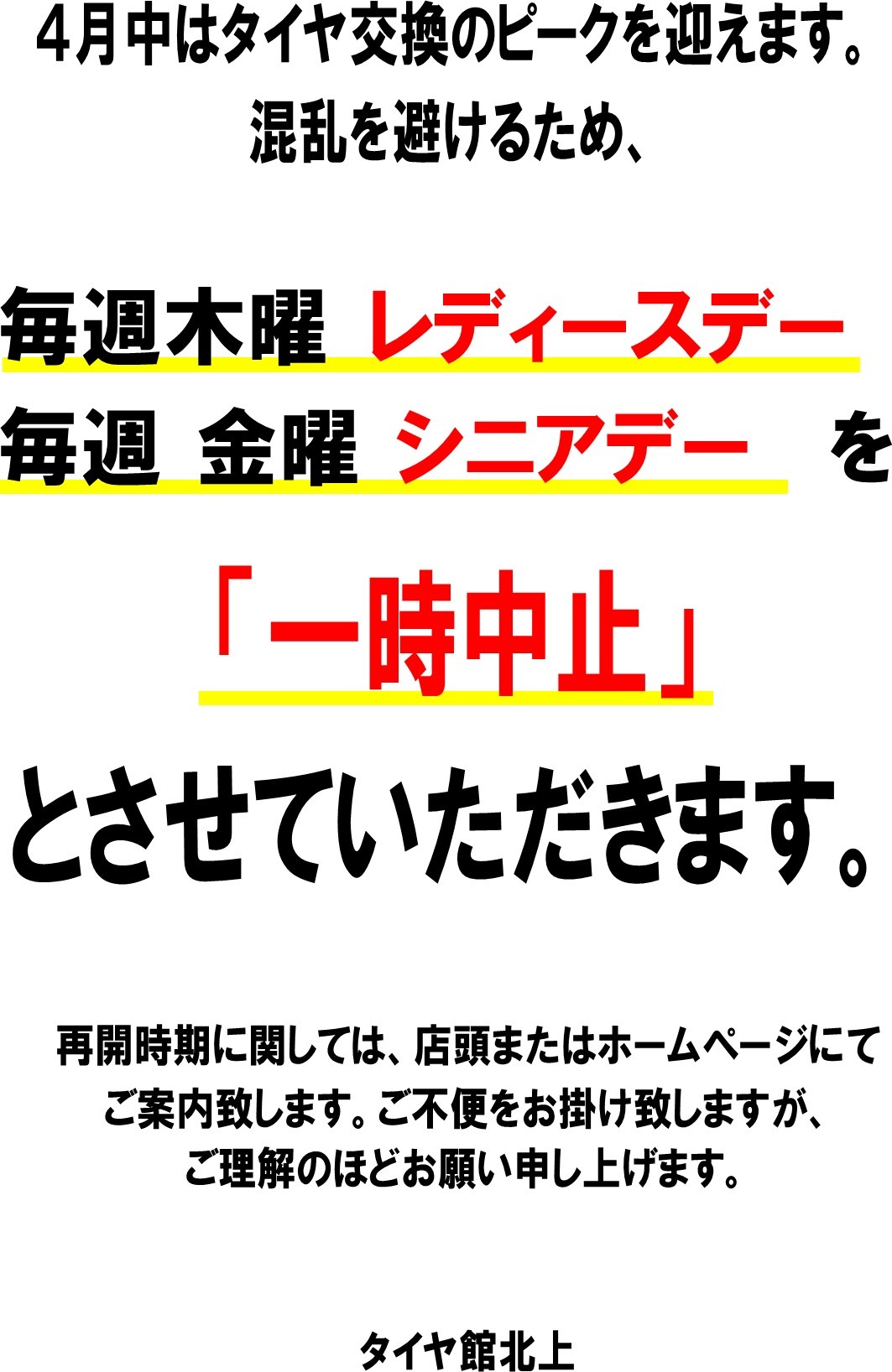 4月中【レディースデー/シニアデー 一時休止】のお知らせ