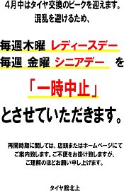 4月中【レディースデー/シニアデー 一時休止】のお知らせ