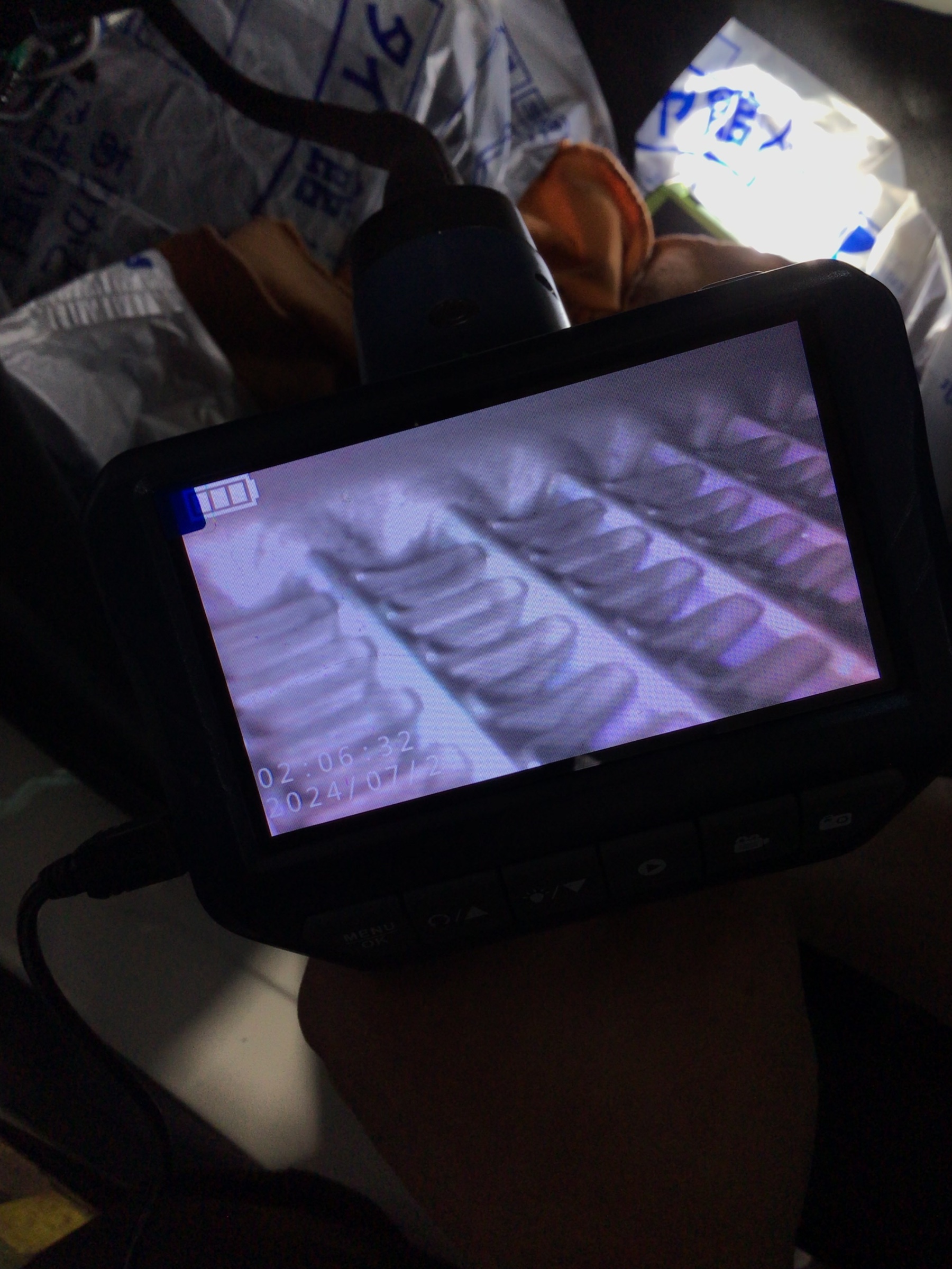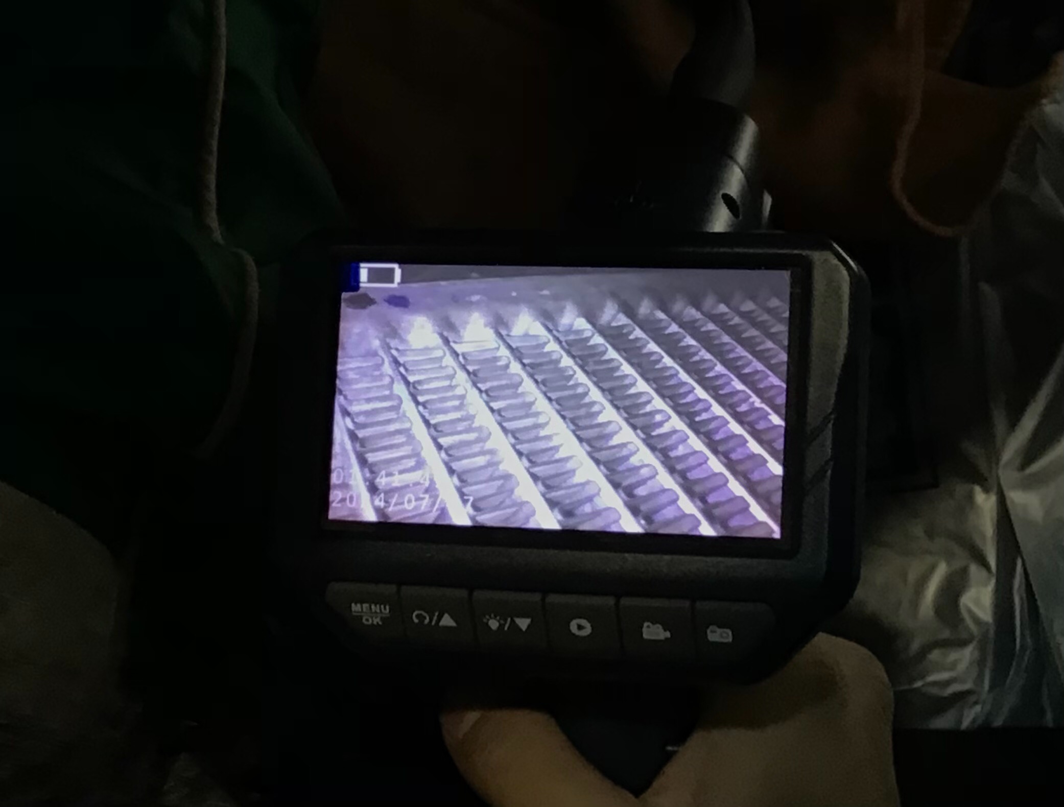 カメラで内部の洗浄前を写しています。