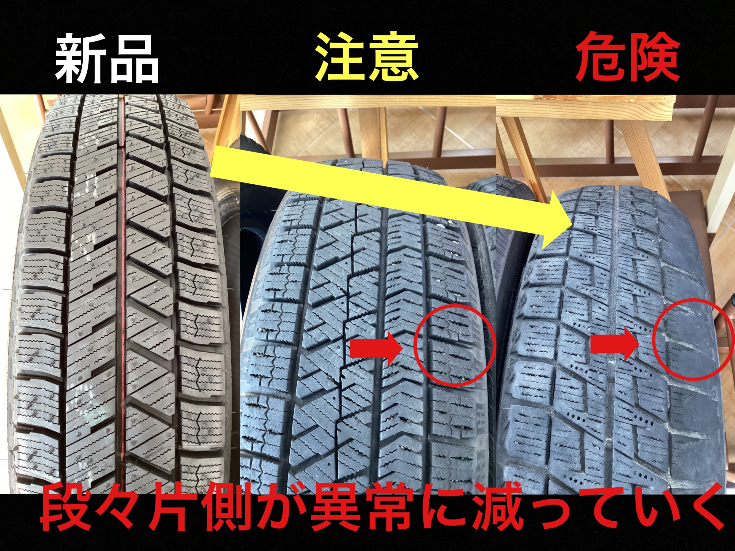 せっかくの冬タイヤの寿命を縮めてしまいます。