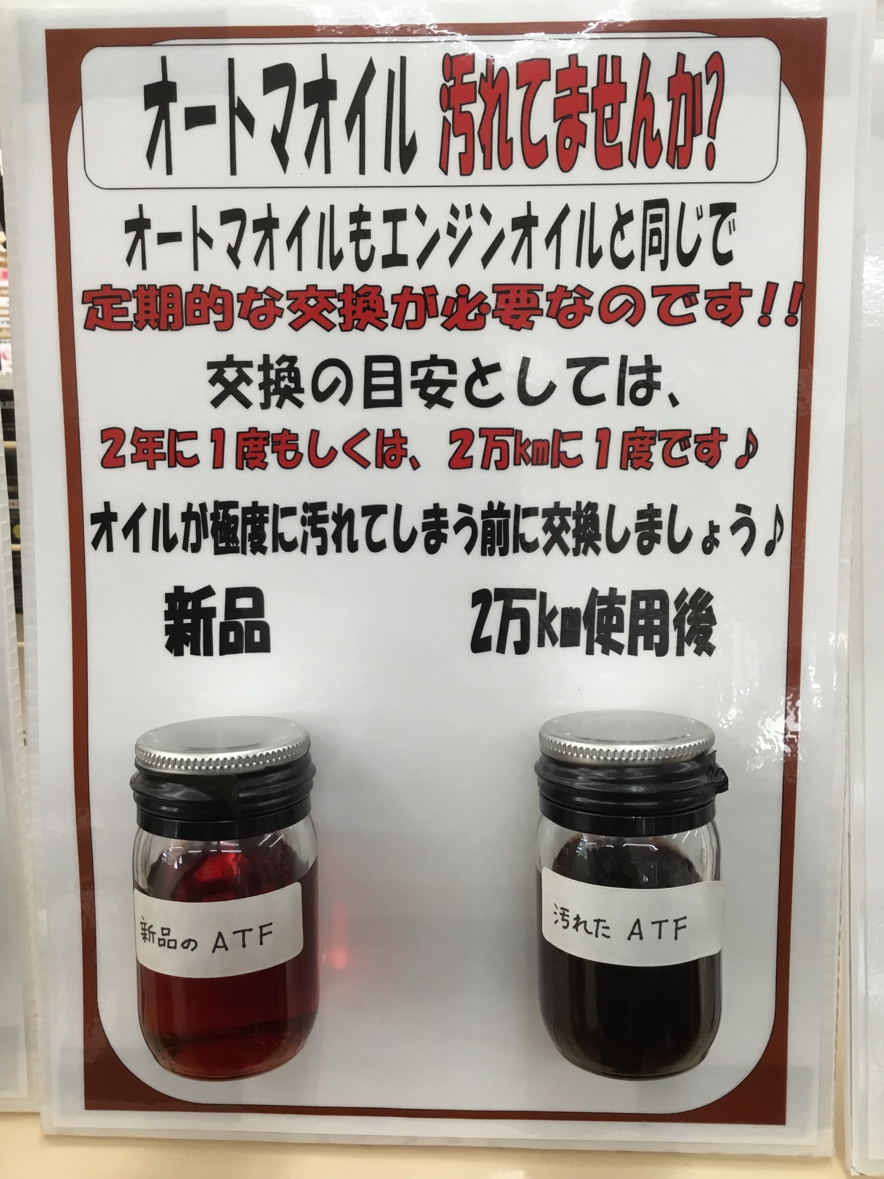 オートマチックオイル ポスト ほとんどのクルマはオートマチック車です。 ギアをDレンジに入れてアクセルを踏めば加速します。 あまり知られていませんがオートマチックオイル(ATF)という 物があります。エンジンにエンジンオイルがあるのと一緒で オートマチック車にもオートマチックオイルがあるんです。 交換しないと加速時の変速ショックが大きくなったり クルマの寿命が縮まったりします。頻繁に交換する部分では ありませんが定期的に交換をオススメします。 カテゴリ:商品情報 その他メンテナンス