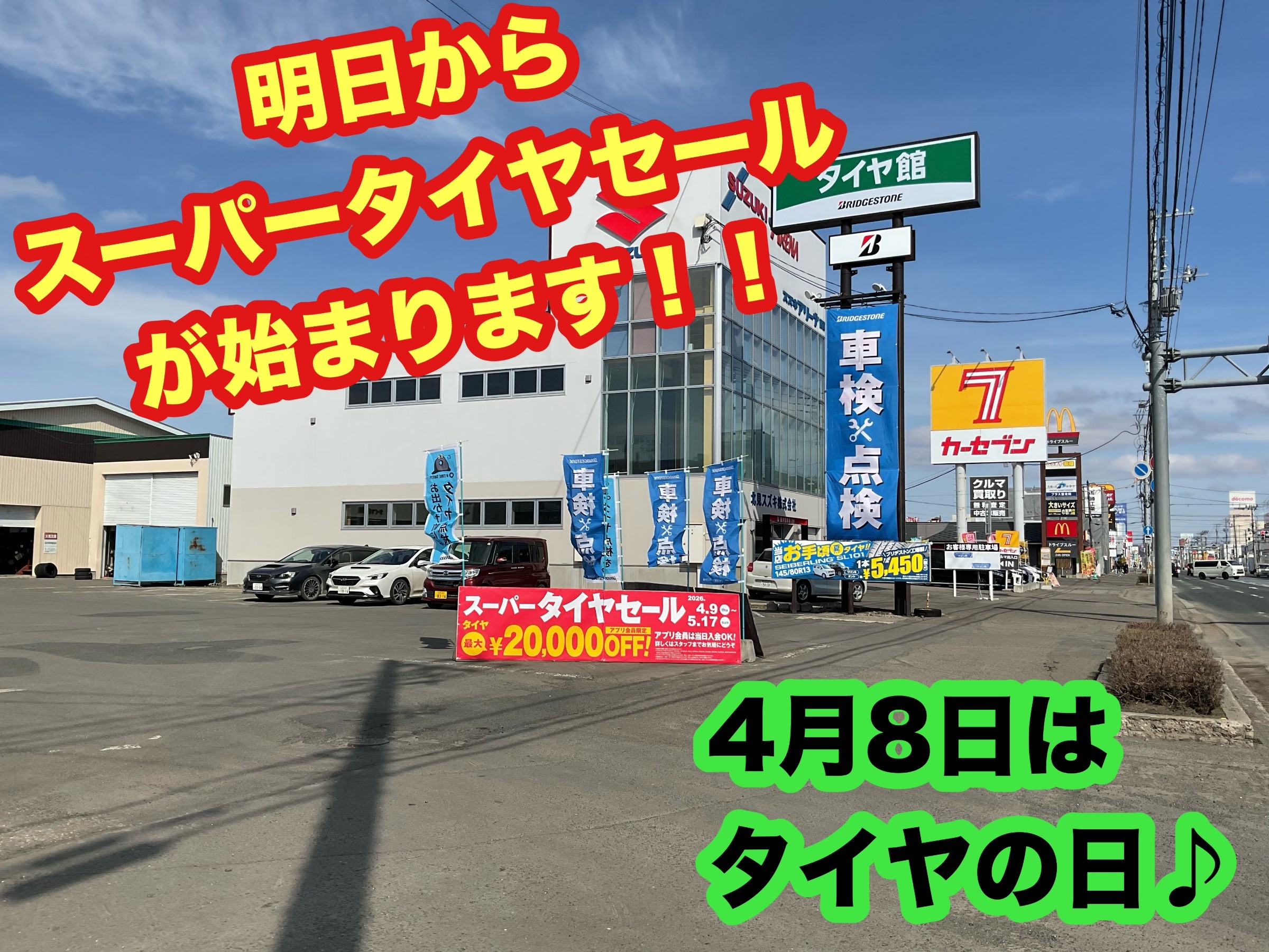 4月8日はタイヤの日♪明日からスーパータイヤセールが始まります!