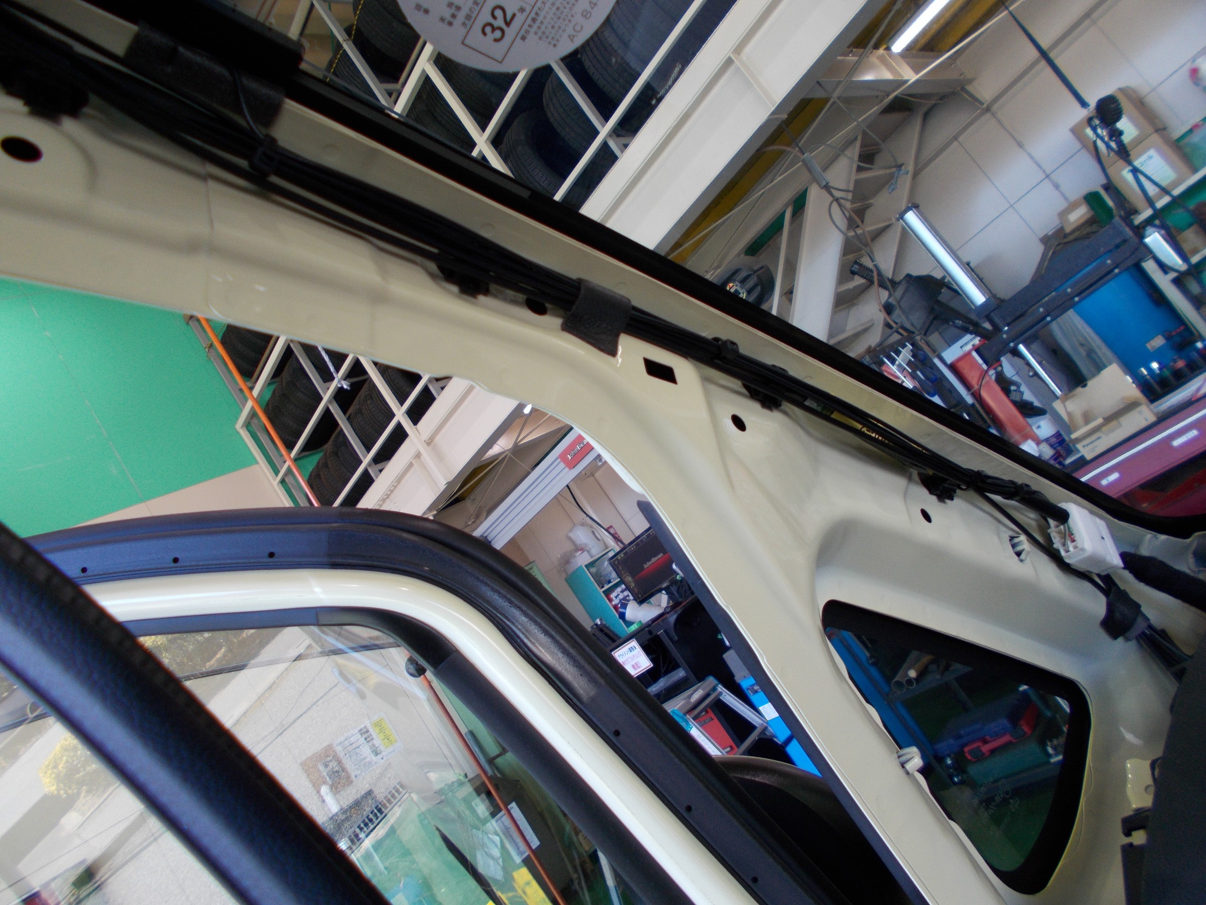 アンテナは自動ブレーキのカメラとナビのアンテナを避けて、フロントガラス上部に