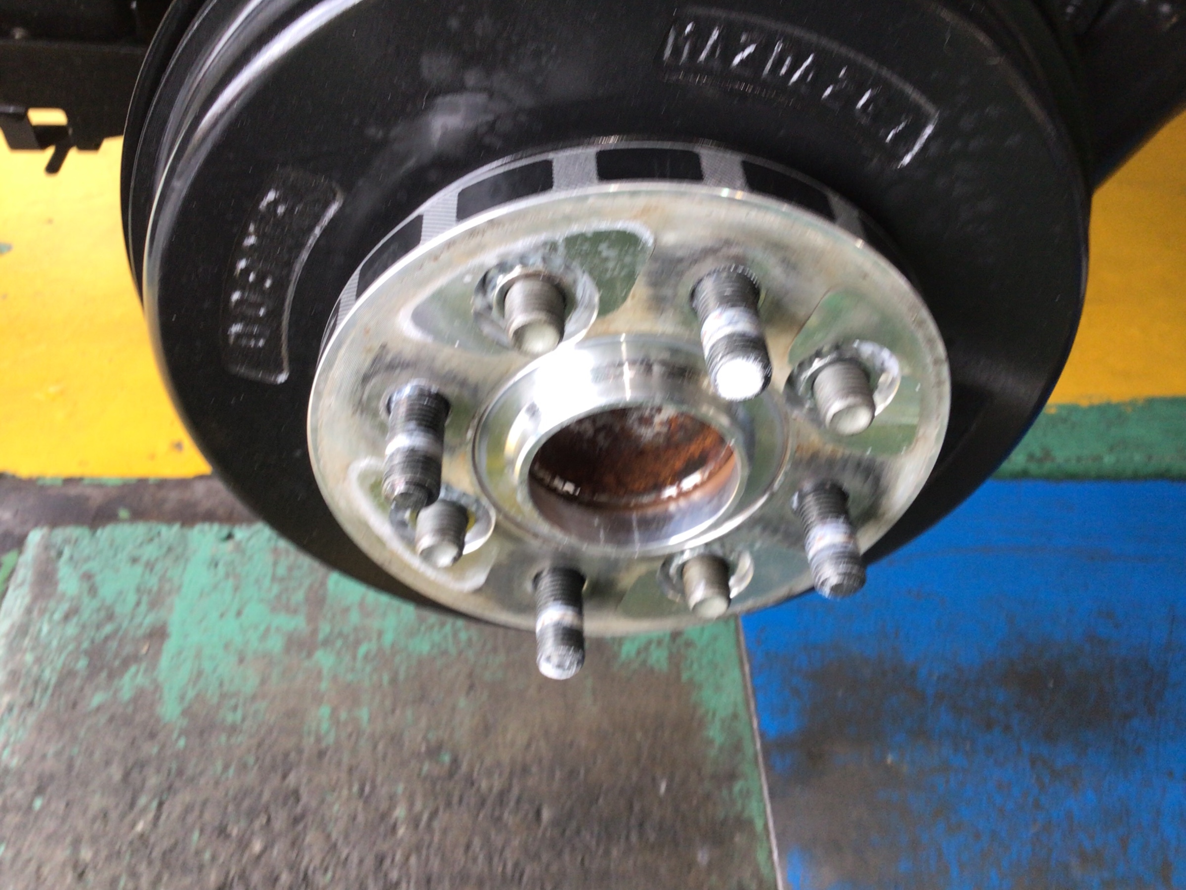 入庫時は別のアルミホイールがワイドトレッドスペーサーで装着されて