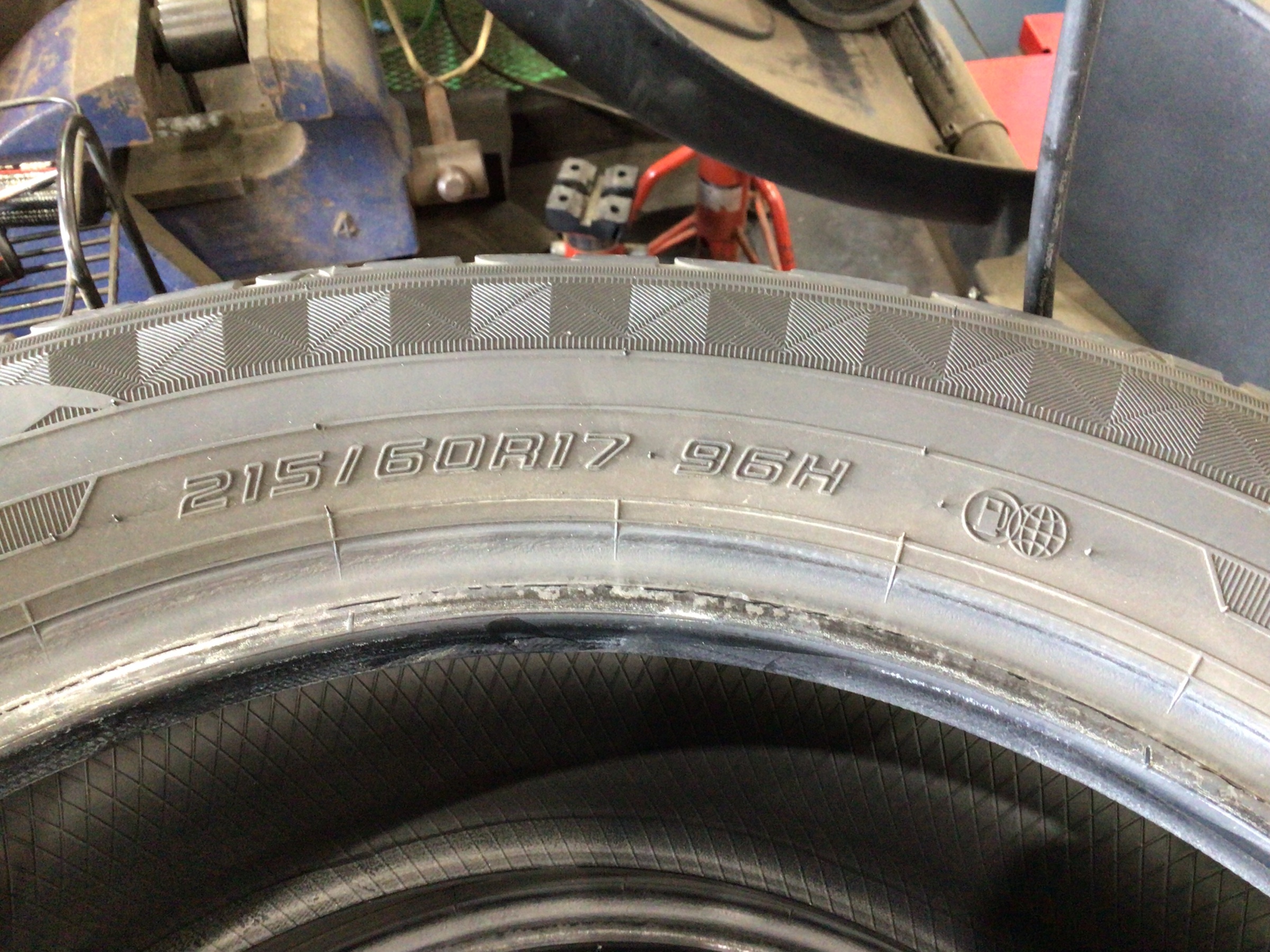 ご覧の通り、入庫時の装着タイヤは経年劣化によりサイド部が