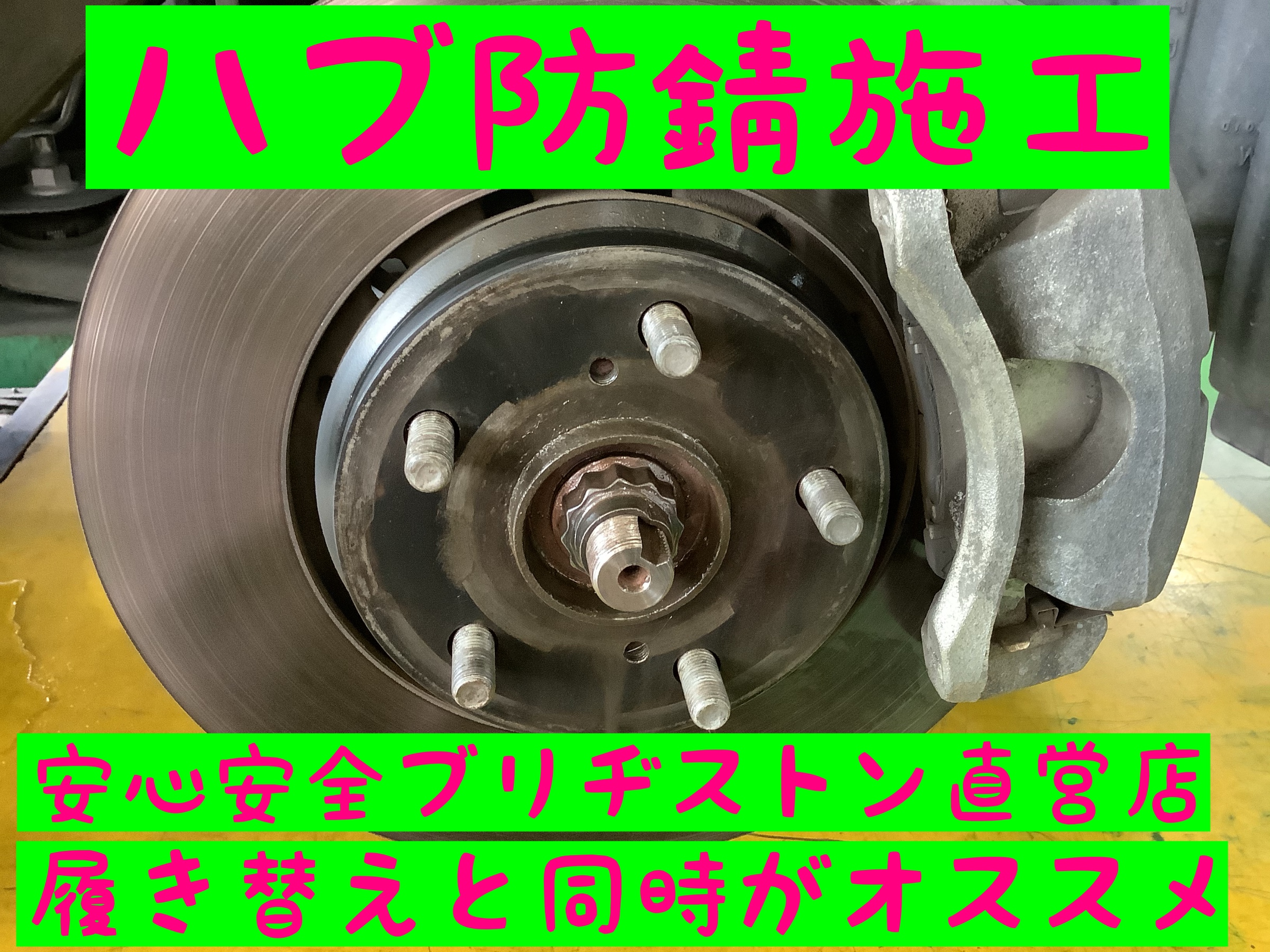 ハブ防錆施工 ポスト 2021年11月16日 当店でも人気メニューのひとつ、ハブ防錆施工。 今冬タイヤへの履き替えが始まっていますが同時にハブ防錆施工が オススメです。 なぜならタイヤを外さないとハブ防錆は出来ないからです。 専用の工具を使い作業をスピーディーに進めます。 キレイに磨き上げてから塗り込んで完成。 ※溶剤は無色透明になります。 タグ: 北本市 タイヤ館 安心安全ブリヂストン直営店 履き替え 防錆 ハブ カテゴリ:コーティング関連 担当:鶴田