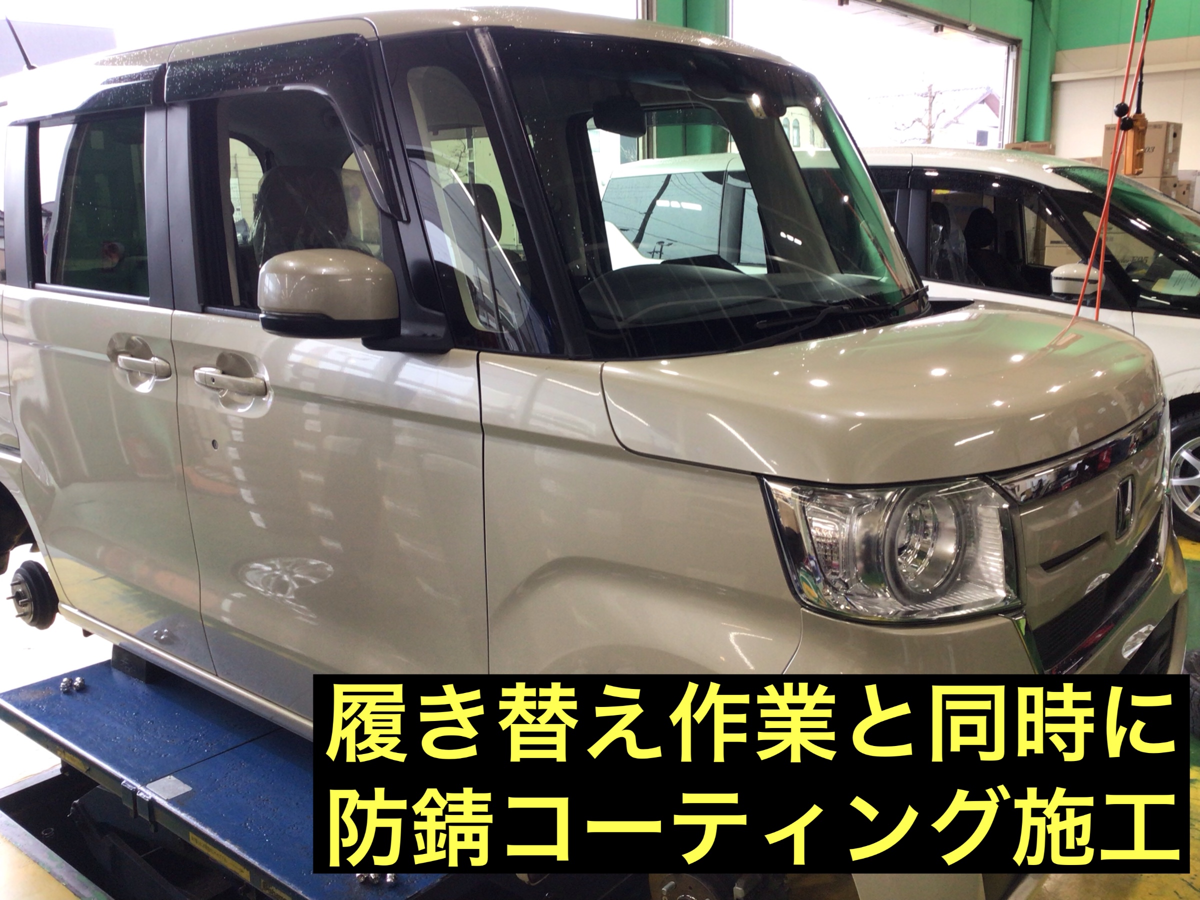 N-BOXのスタッドレスタイヤへの履き替え作業を実施しました。