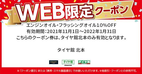 こちらのクーポン券は、タイヤ館北本のみ有効となります。