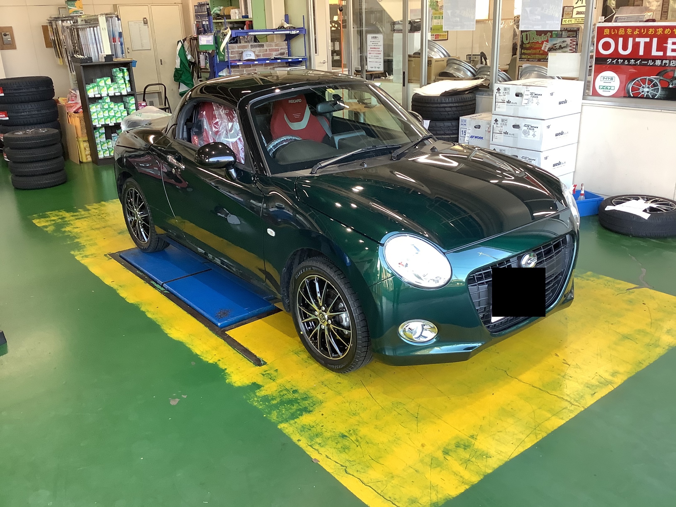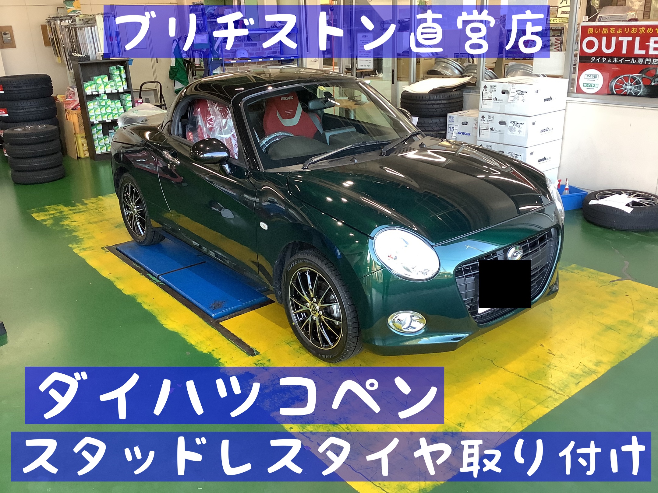 スタッドレスタイヤ取り付け ポスト 2021年12月27日 ダイハツコペンもスタッドレスタイヤを取り付けです。 スポーツカーもスタッドレスタイヤで安心してドライブ、 通勤出来るのでやっオススメです。 今回はタイヤアルミセットにて取り付け。 見た目もオシャレに決まりました。 タグ 北本市 タイヤアルミセット取り付け スタッドレス タイヤ館 ブリヂストン直営店 安心安全 カテゴリ:タイヤ関連 ホイール関連 担当:鶴田