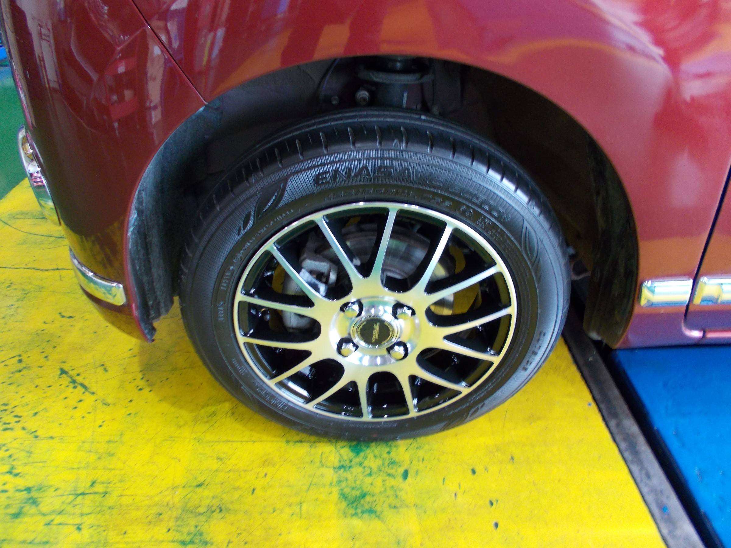今回はオシャレにドレスアップできるアルミホイールに交換です!