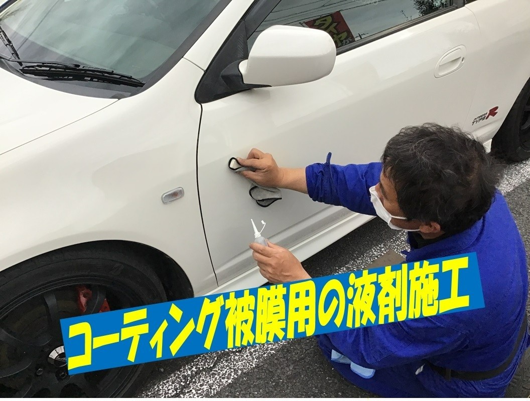 ボディー表面が整ったら、ボディーコーティング専用の被膜形成する溶剤を車全体に施工していきます。