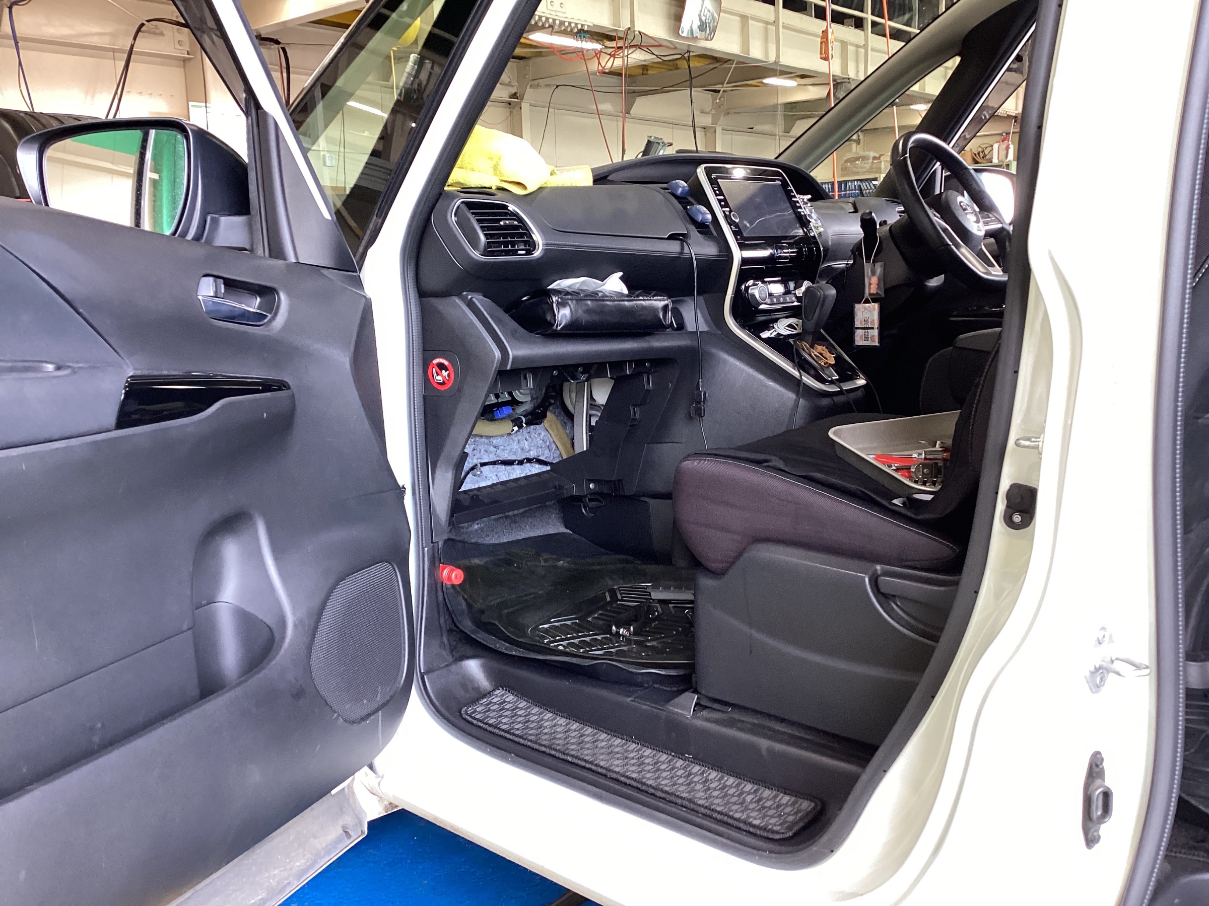 取り付けを行う下準備として、グローブボックスやモールを外していきます。