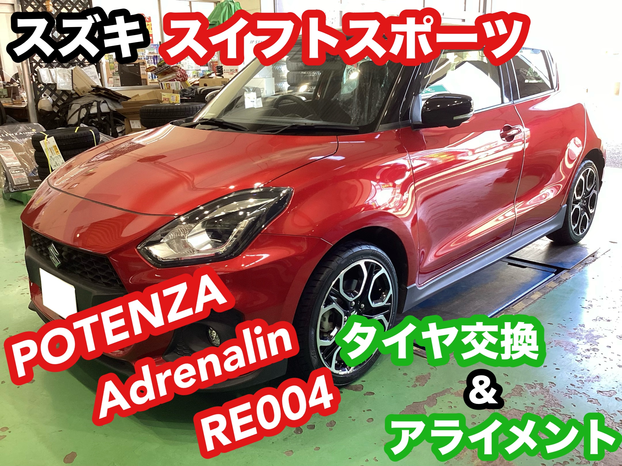 ☆スズキ スイフトスポーツ POTENZA RE004 タイヤ交換&アライメント☆