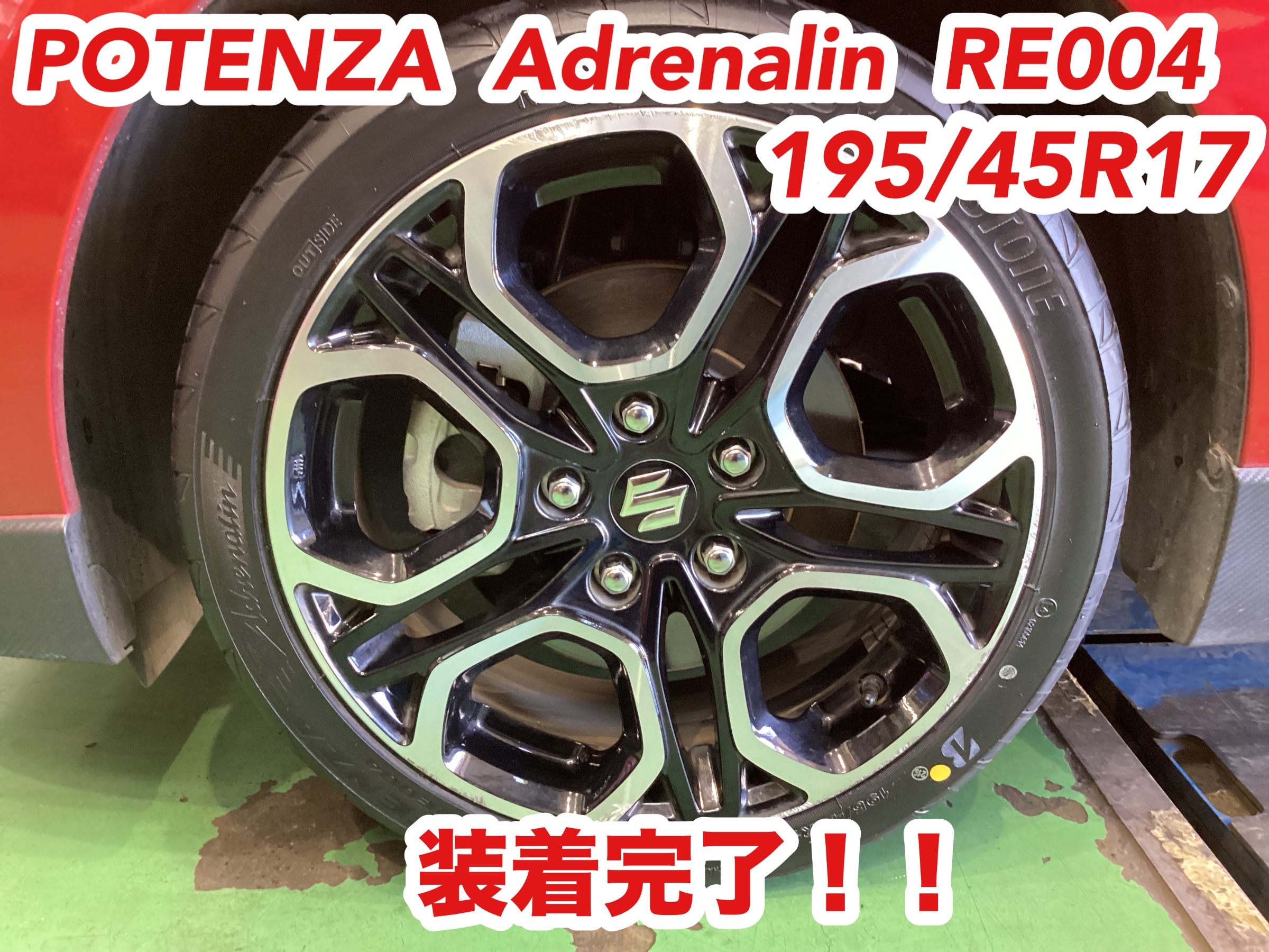 今回装着したタイヤはポテンザRE004アドレナリン、タイヤサイズは195/45R17です。