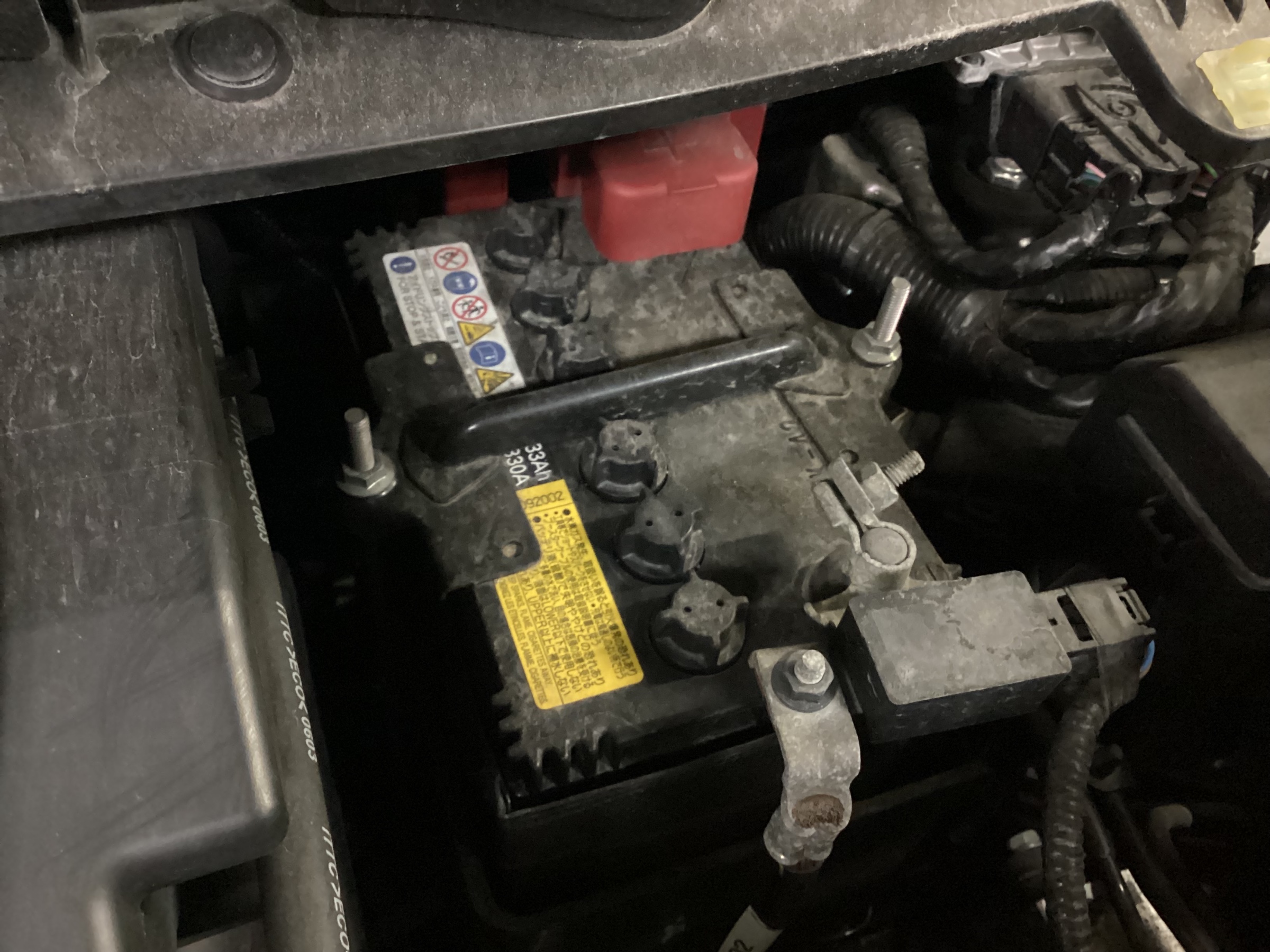 古いバッテリーは新車時から付いている物で、バッテリーの