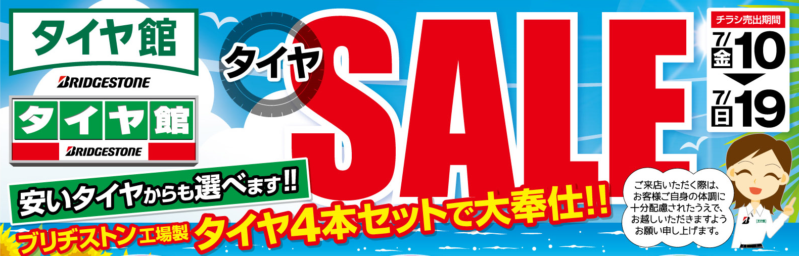 明日から、タイヤSALEスタートです ポスト 2020年7月9日 こんにちはヽ(^o^) 先日ご案内していました、【タイヤSALE】!! 明日7/10から開催します。 タイヤには沢山種類がありますので、 どれを選べば良いか分からないという お客様も多いのではないでしょうか? そんな方でも大丈夫です! お客様の用途に合わせたピッタリの タイヤをご用意させて頂きますので、 安心してご来店ください♪ 沢山のお客様のご来店、 スタッフ一同、元気にお待ちしております。 担当:れいな