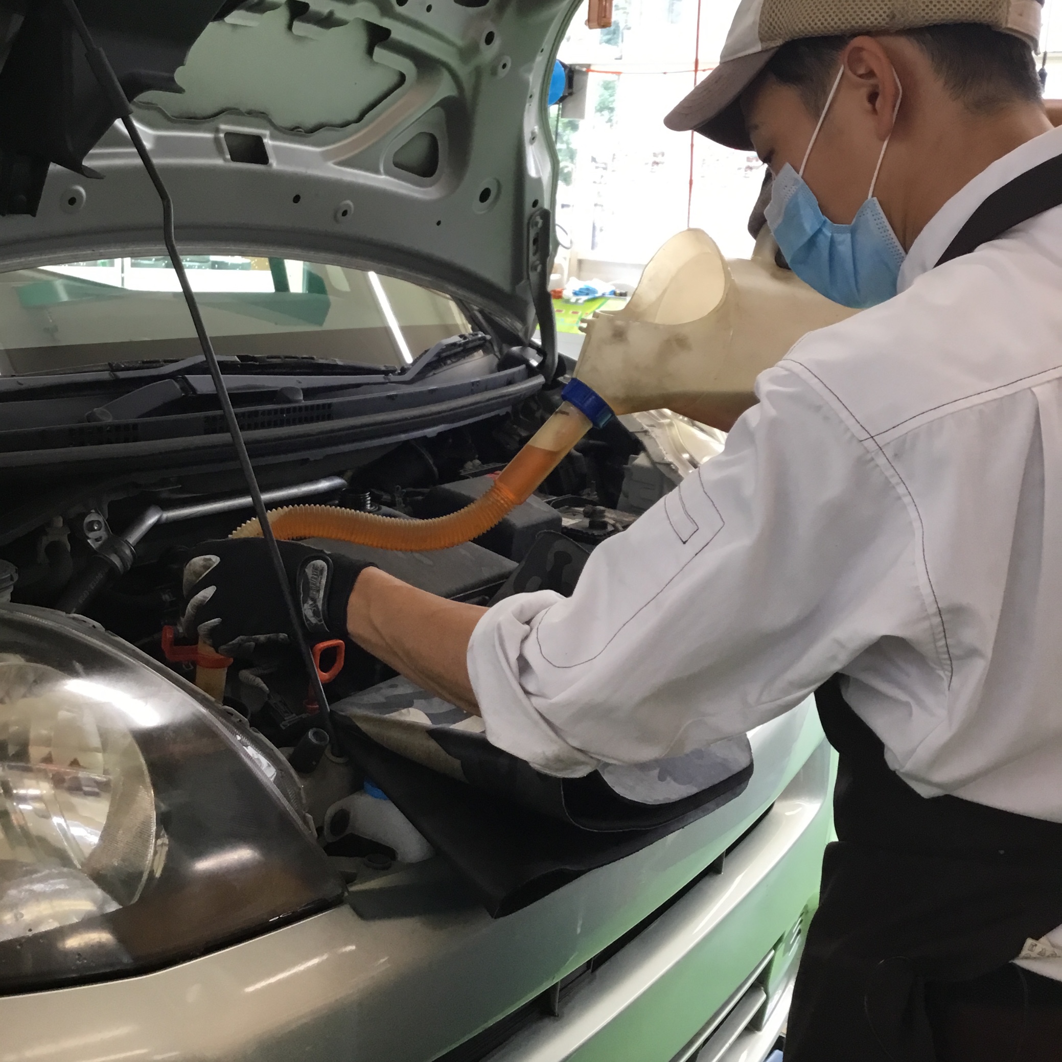 オイル交換中の山田さん