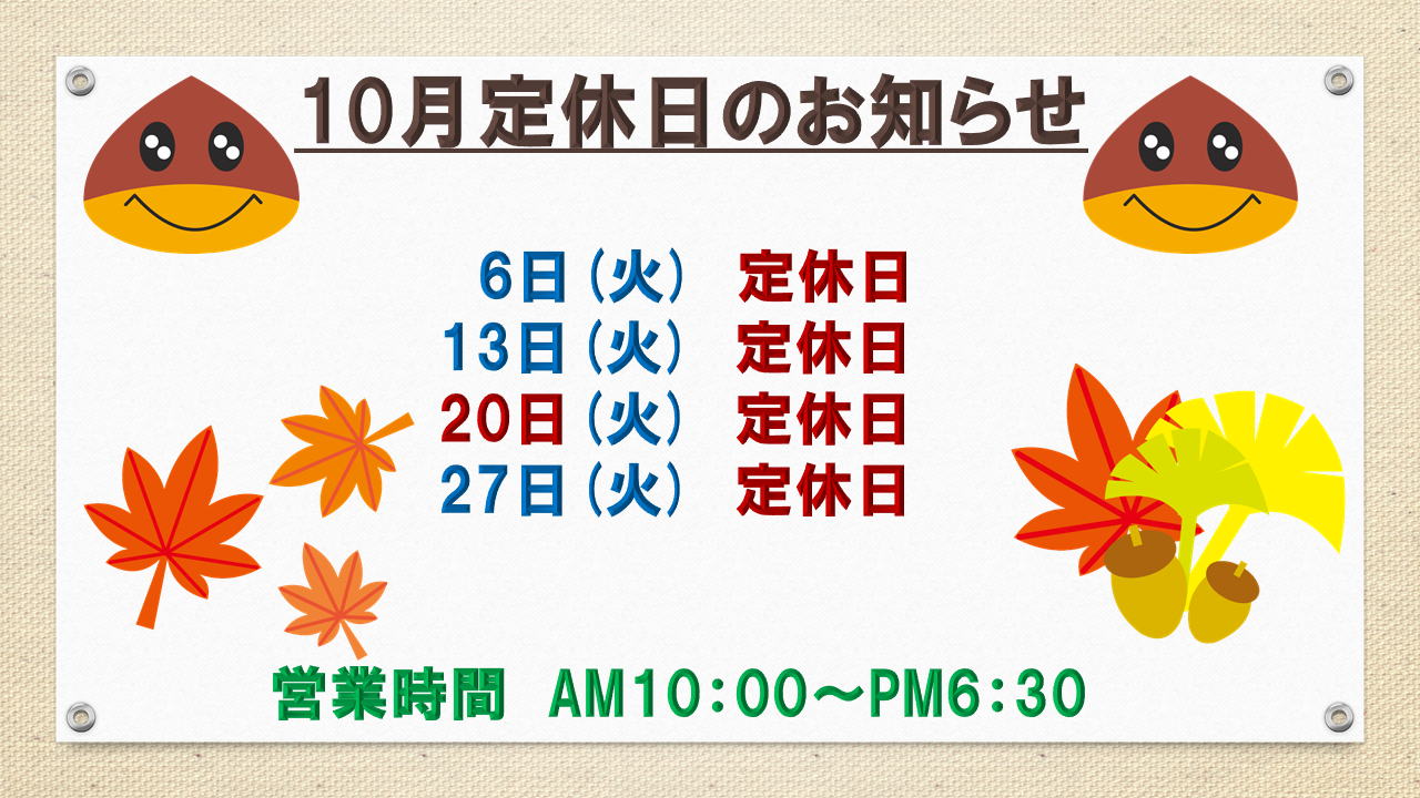 10月定休日のご案内