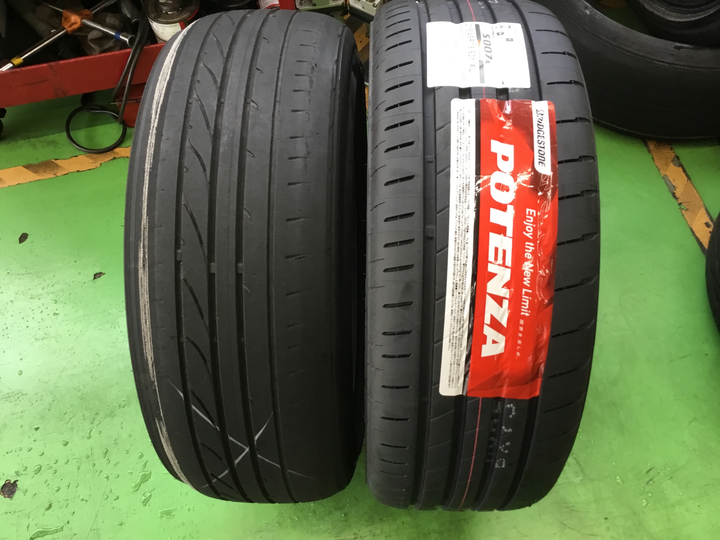 このように右の新品タイヤに比べ、