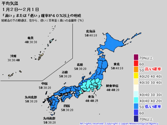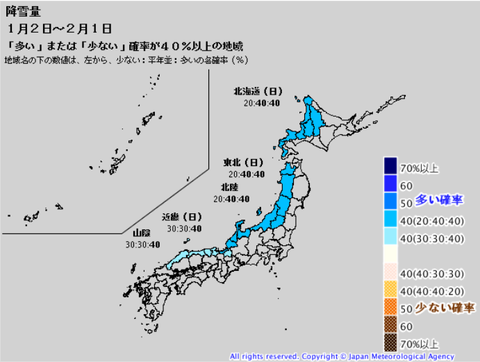 引き続き、寒く、降雪の可能性が高い予報と