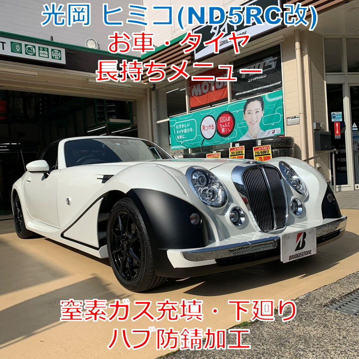 光岡 ヒミコ(ND5RC改)窒素ガス充填、下廻り・マフラー・ハブ防錆加工