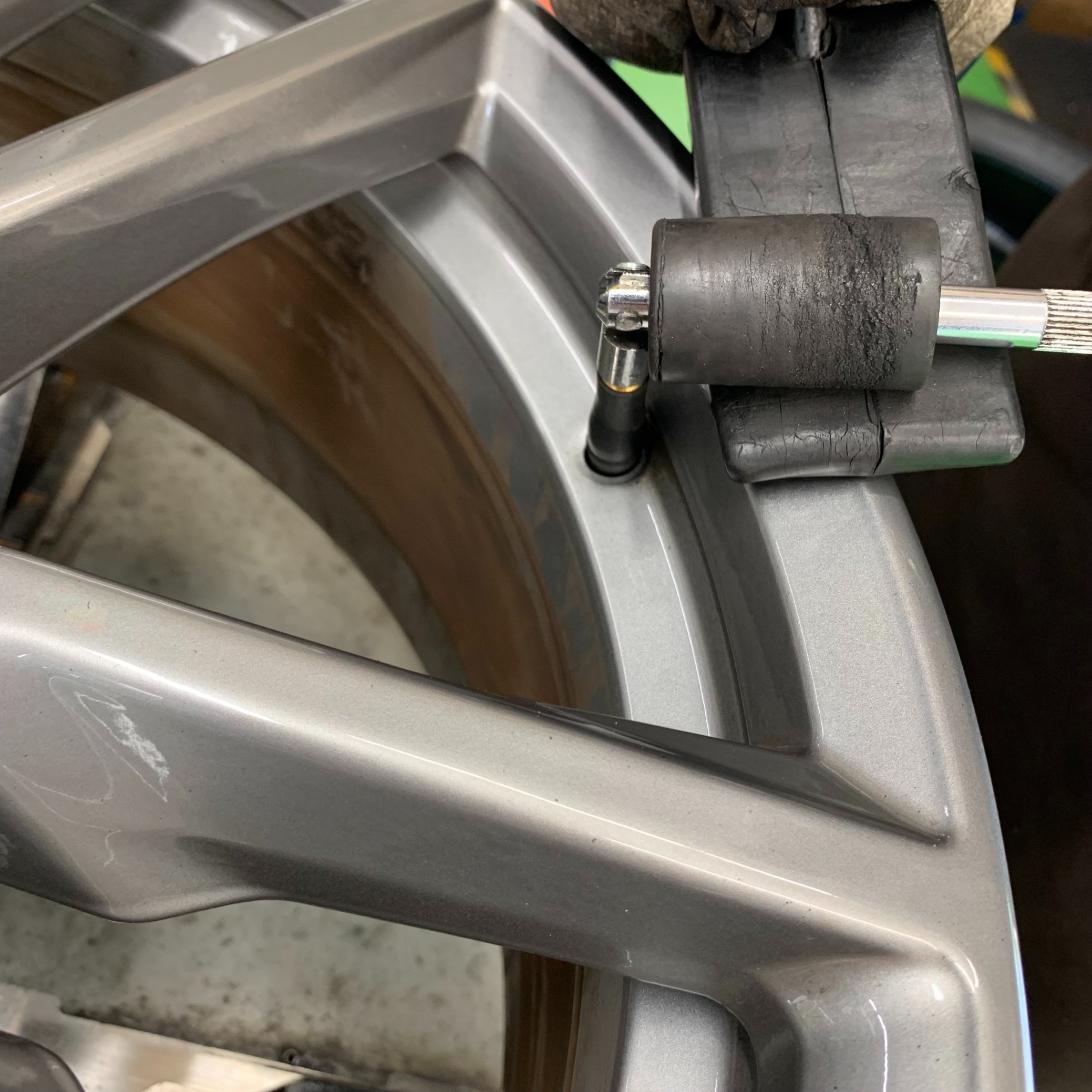 タイヤとホイールが接する部分の清掃を行います。