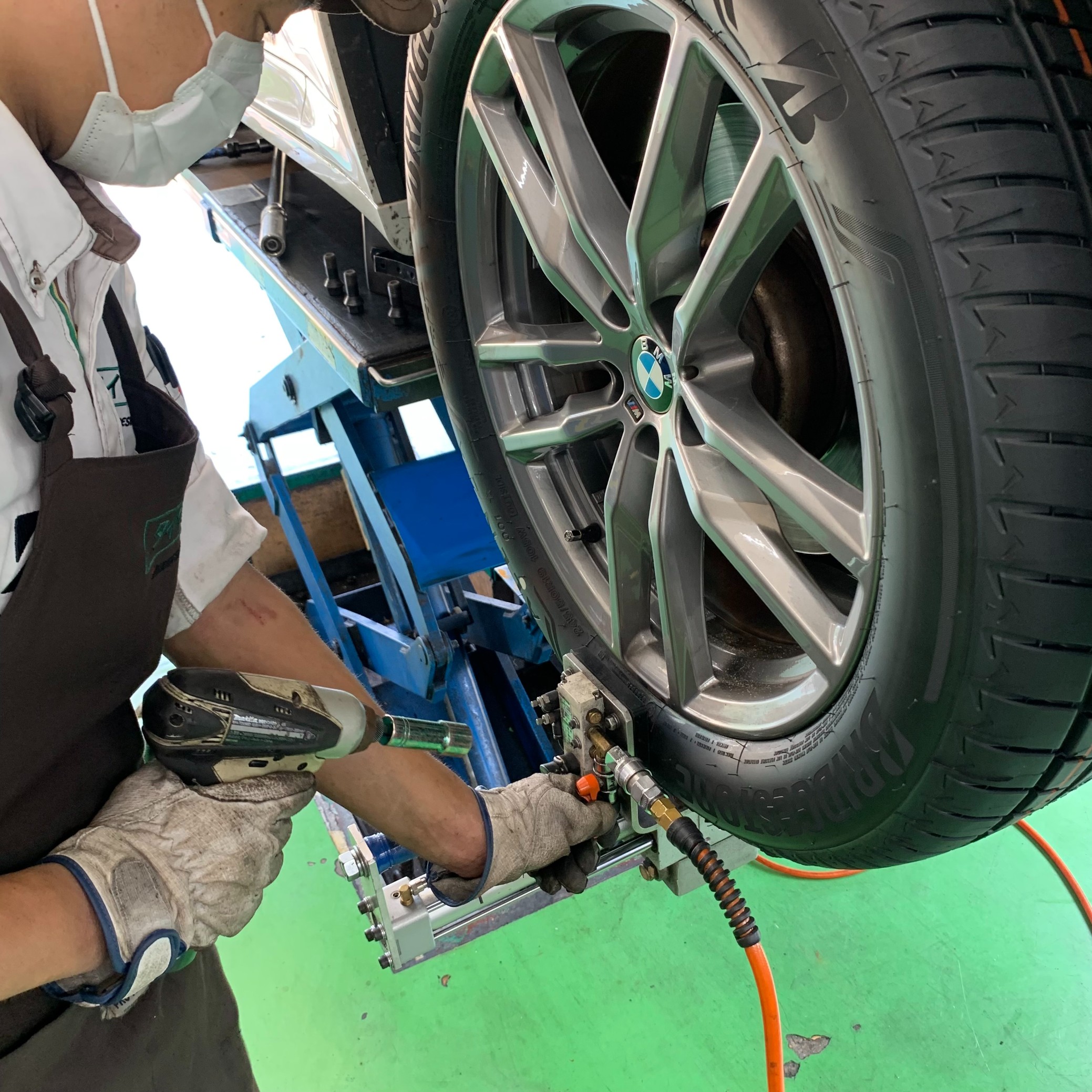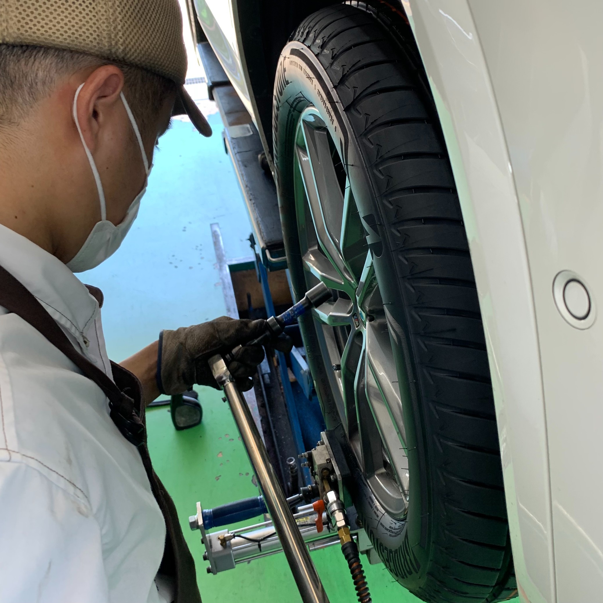 今日はここで、タイヤ交換作業の様子を