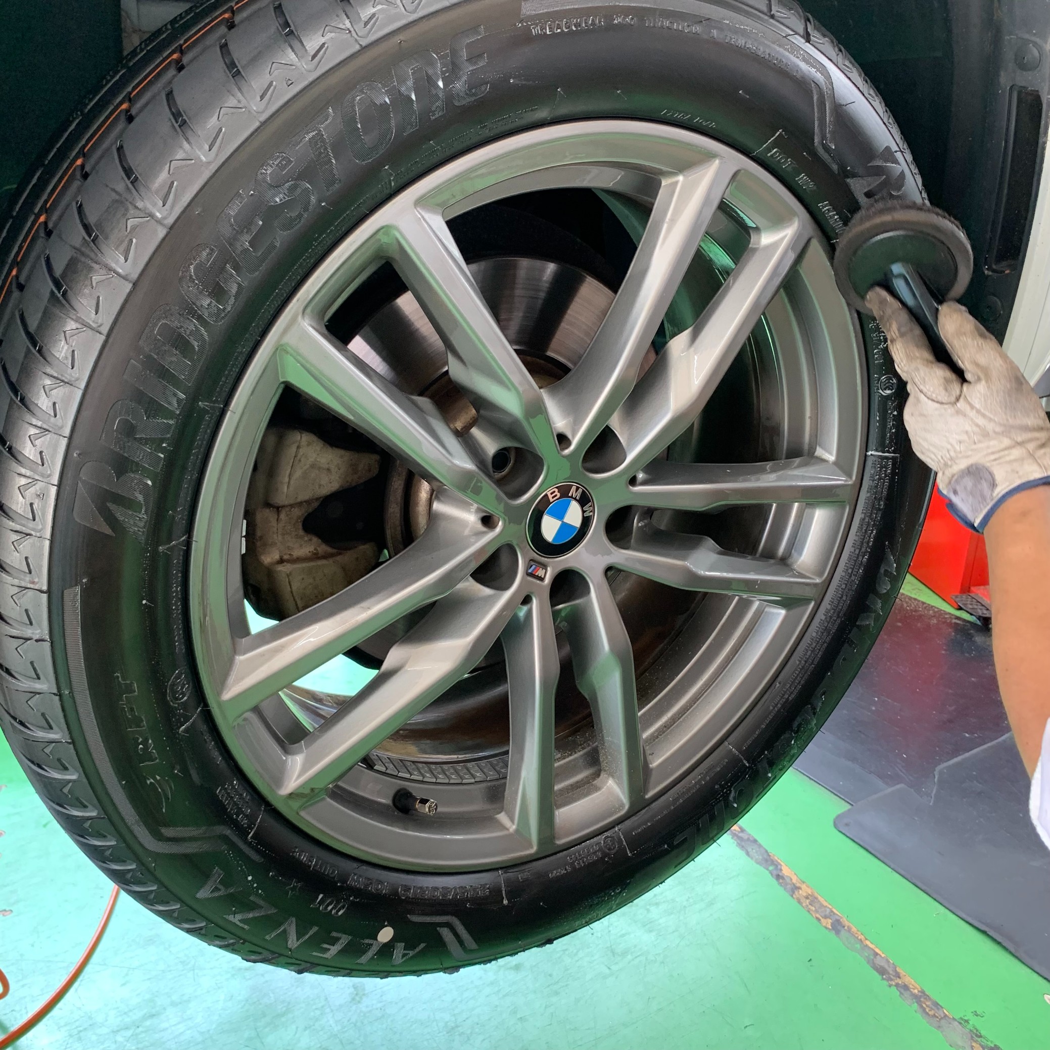 取付完了後、ブリヂストンのタイヤワックス