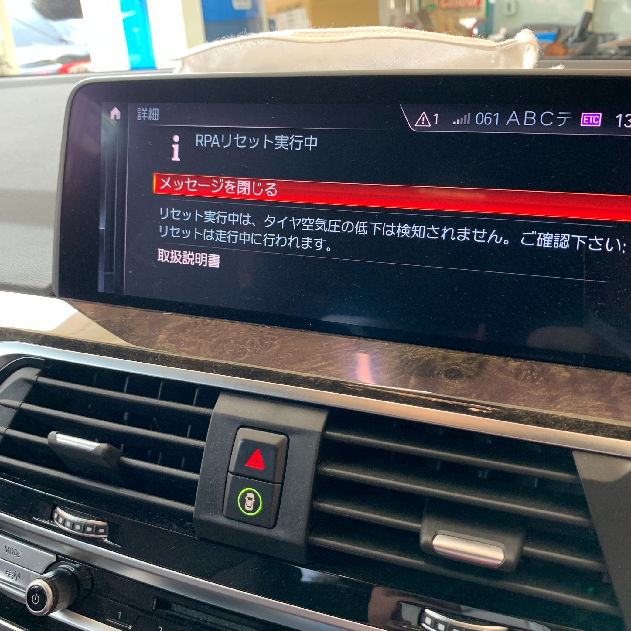 最後に、空気圧センサーのリセット作業を行い、