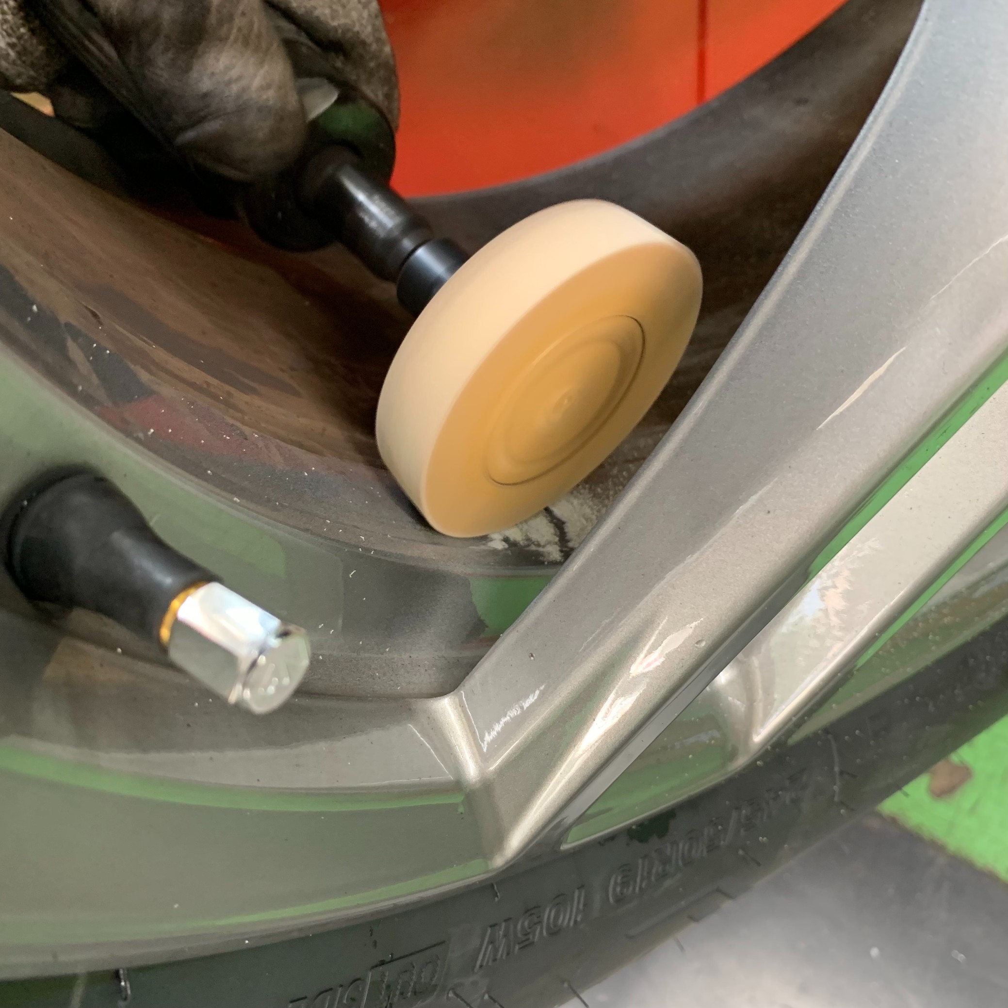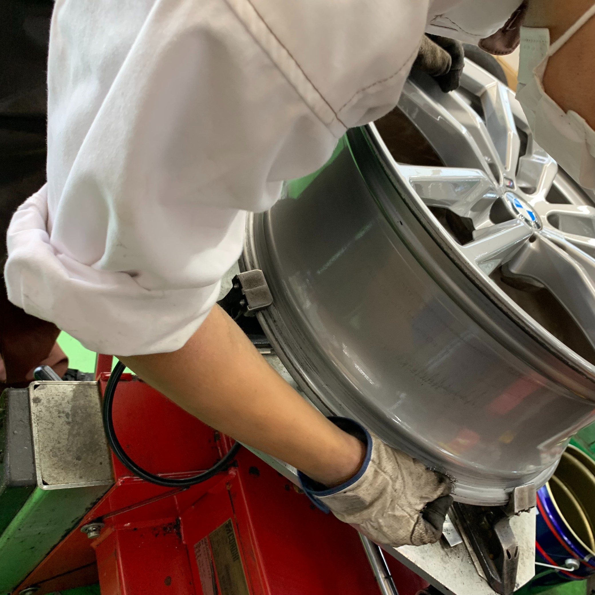 ホイールを傷つけないよう、細心の注意を払いながら