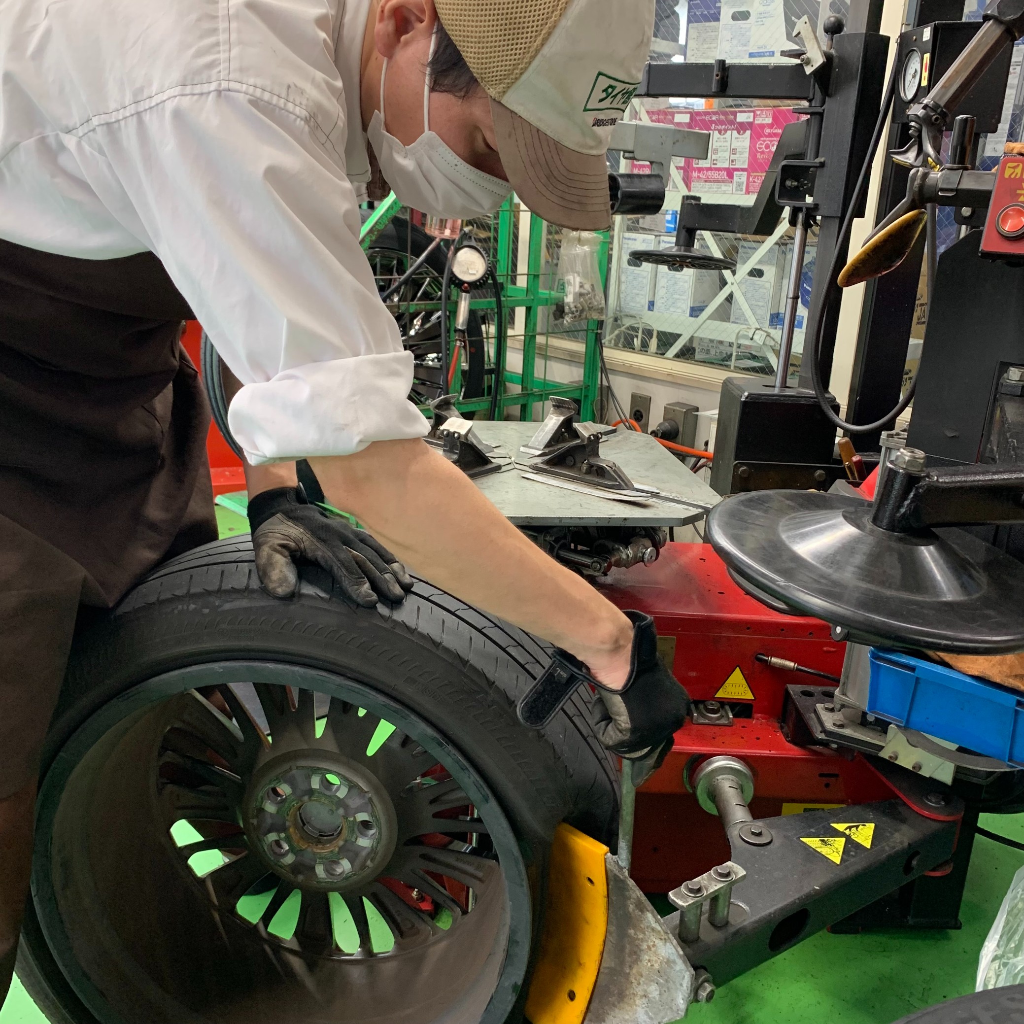 熟練のタイヤ交換作業の様子をご紹介します。