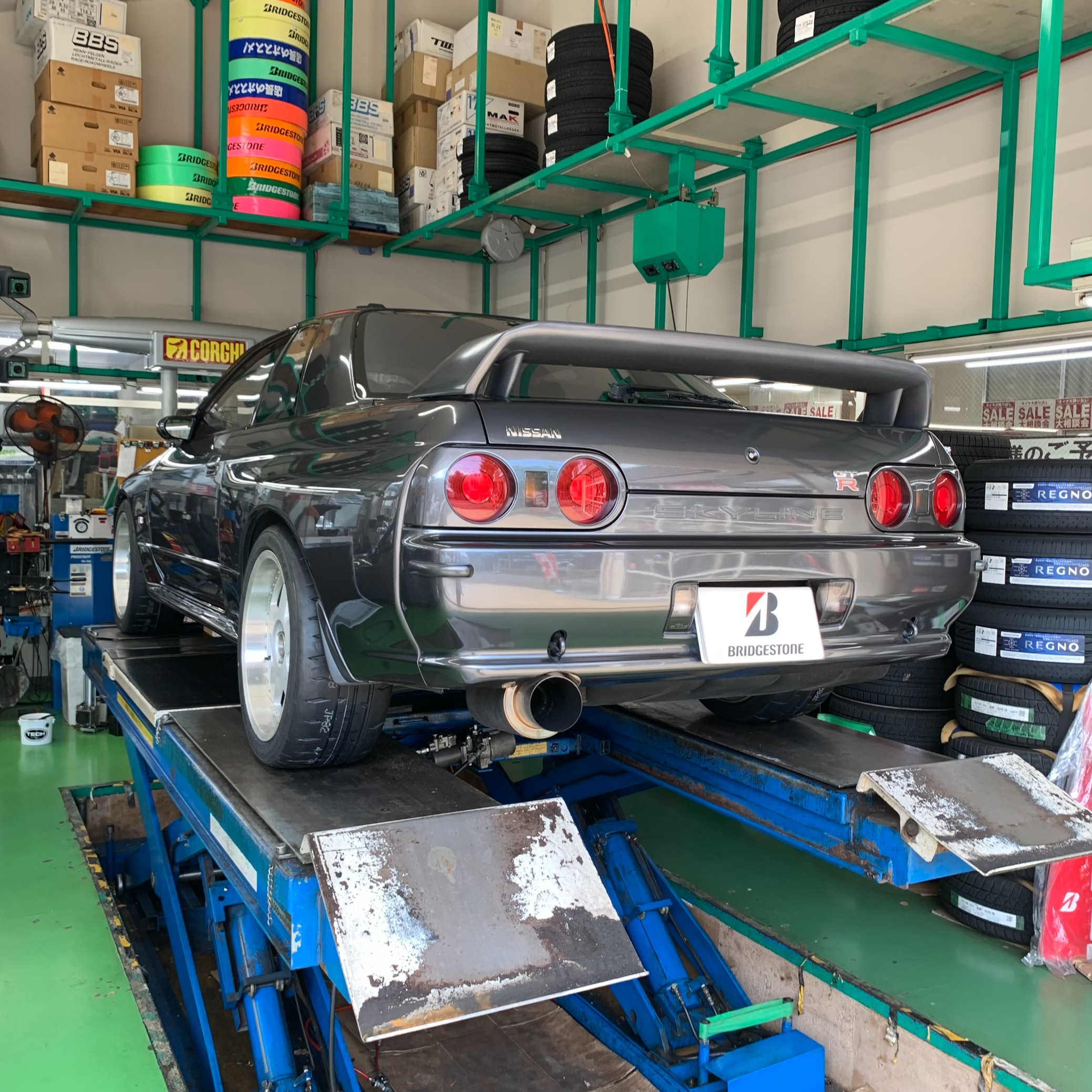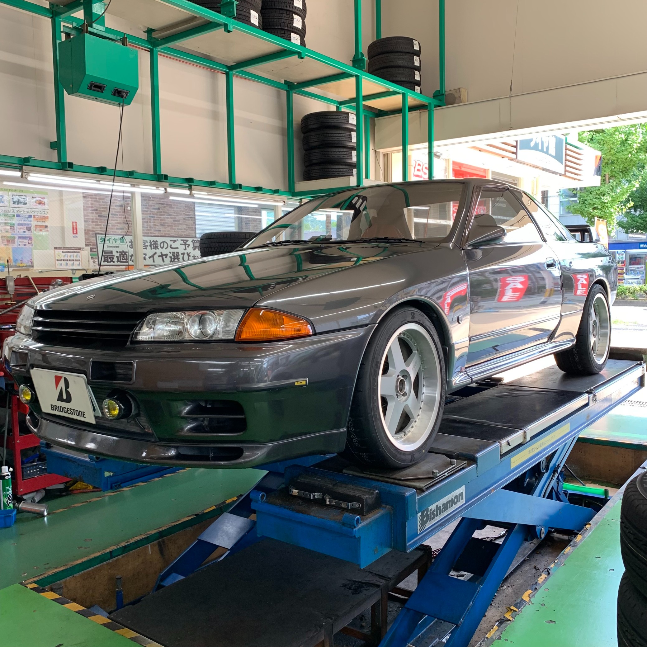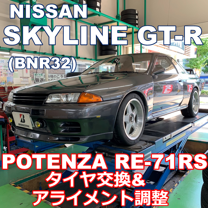 日産 スカイライン GT-R (BNR32) に POTENZA RE-71RS でタイヤ交換&アライメント調整