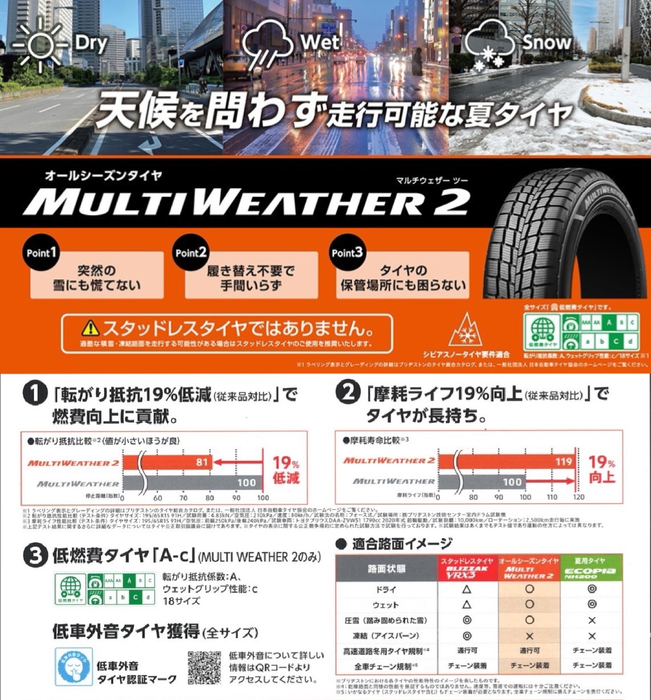 場合は夏タイヤと同じ性能です。