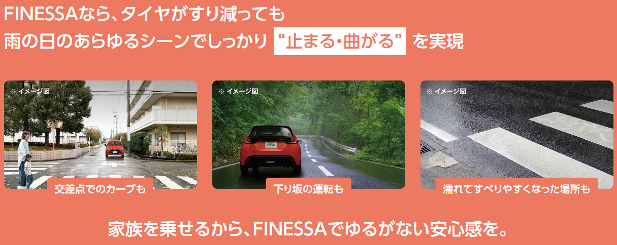 フィネッサなら、タイヤがすり減っても雨の日のあらゆる