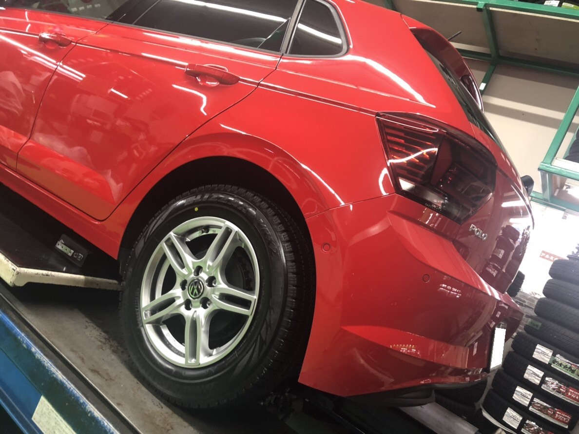 お客様の新型ポロ(AW1)にスタッドレスタイヤ・ホイールセットを装着しました♪
