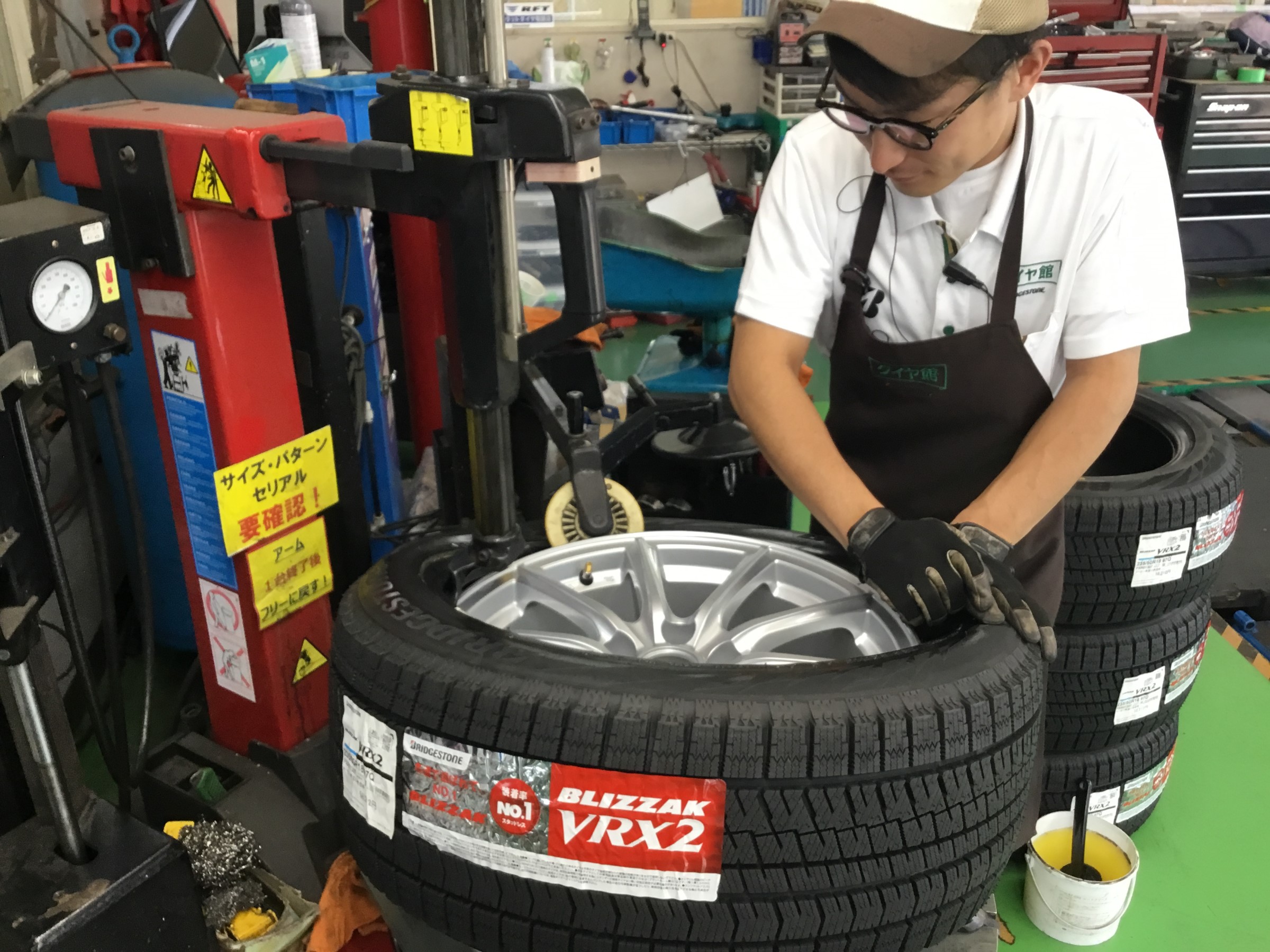 ↑こちらは今日ご購入されたお客様のスタッドレスタイヤを組んでいる様子です!