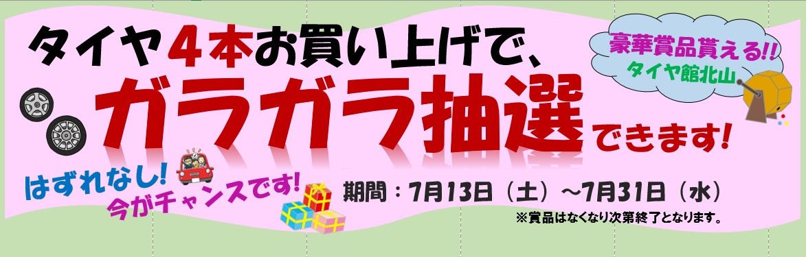タイヤ館北山限定で、「ガラガラ抽選会」のイベントを致します!