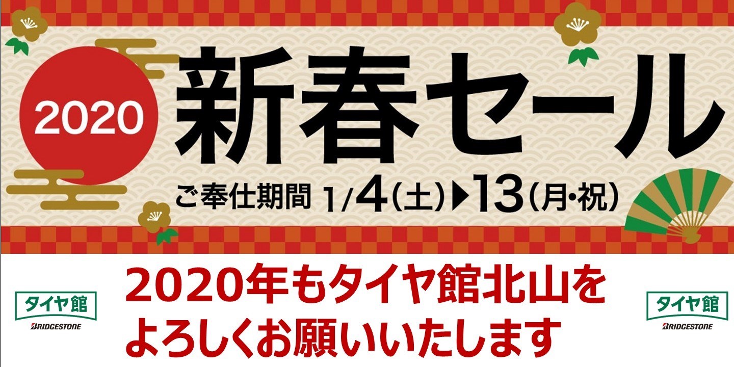 新年あけましておめでとうございます ポスト 2020年1月1日 明けましておめでとうございます。 旧年中は格別のご愛顧を賜り 厚く御礼申し上げます。 2020年もタイヤ館北山を よろしくお願い申し上げます。 新年の初営業は、1月4日10:30~となります。 初日から新春セールを開催いたします。 お買い得品を多数ご用意しております。 また年末年始に長距離を走った お車のメンテナンスなど、 お気軽にお申し付けください。 皆様のご来店、スタッフ一同お待ちしております。 担当:戸田